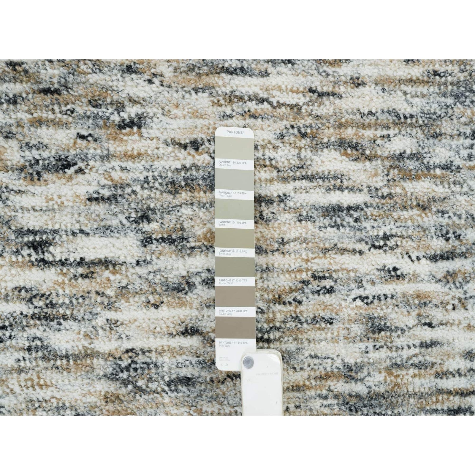 12'2"X15' Beige Modern Striae Design Pure Wool Hand Loomed Oversized Rug