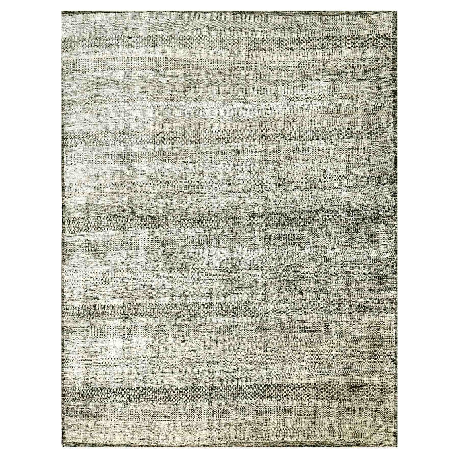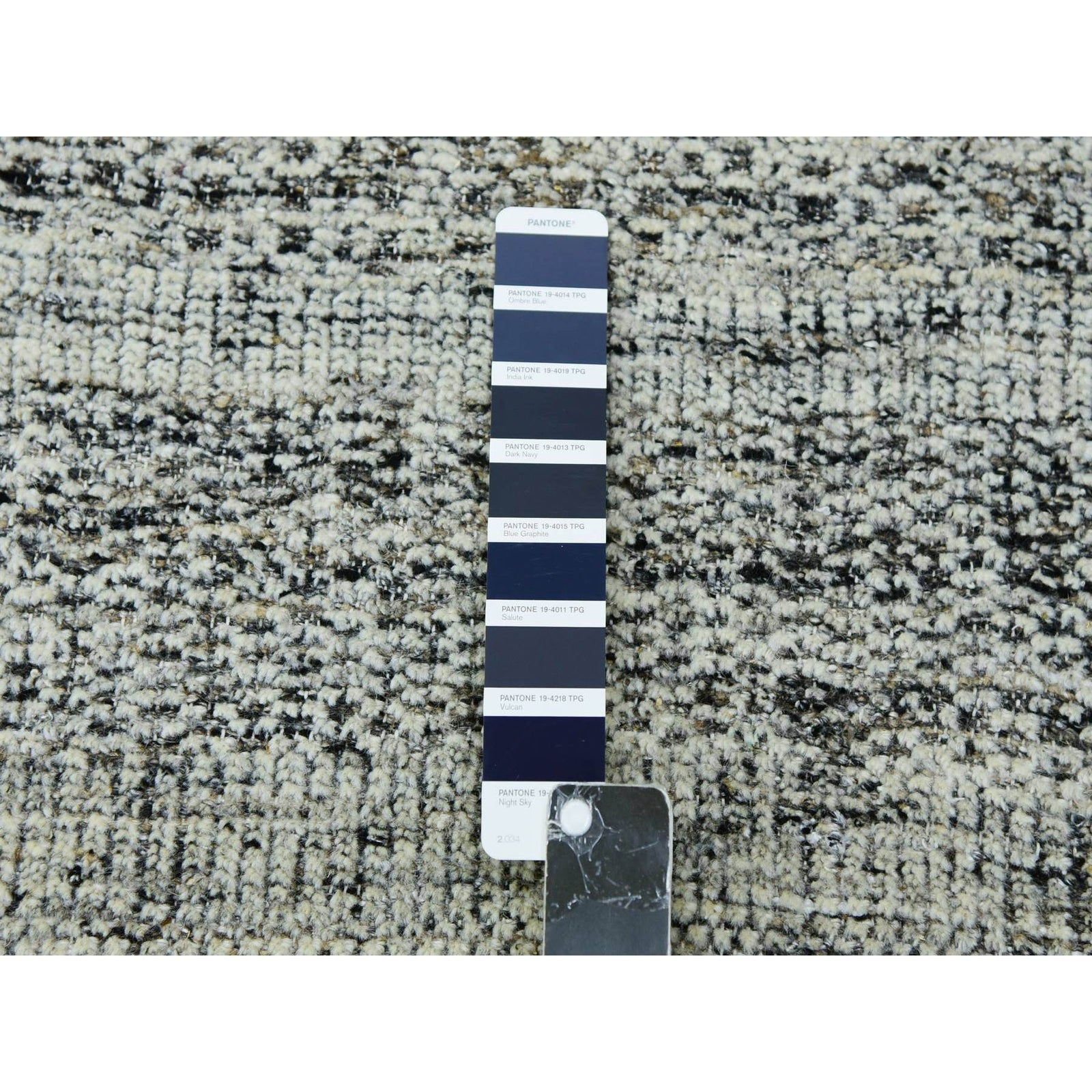 12'2"X15' Gray & Black Hand Knotted Oxidized Grass Design Oversized Rug