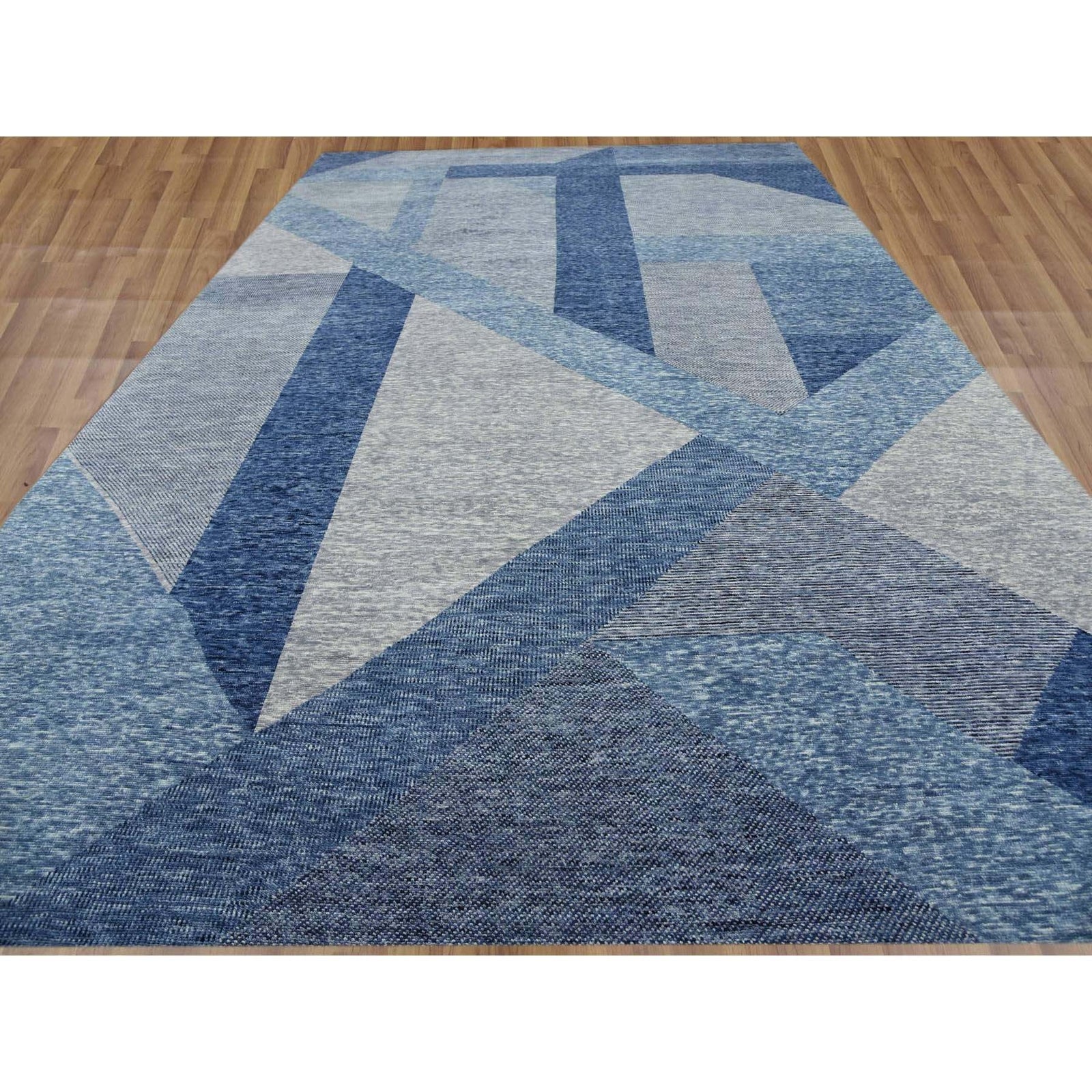 12'2"X18'3" Blue Wool Hand Knotted Art Deco Collection Oversized Rug