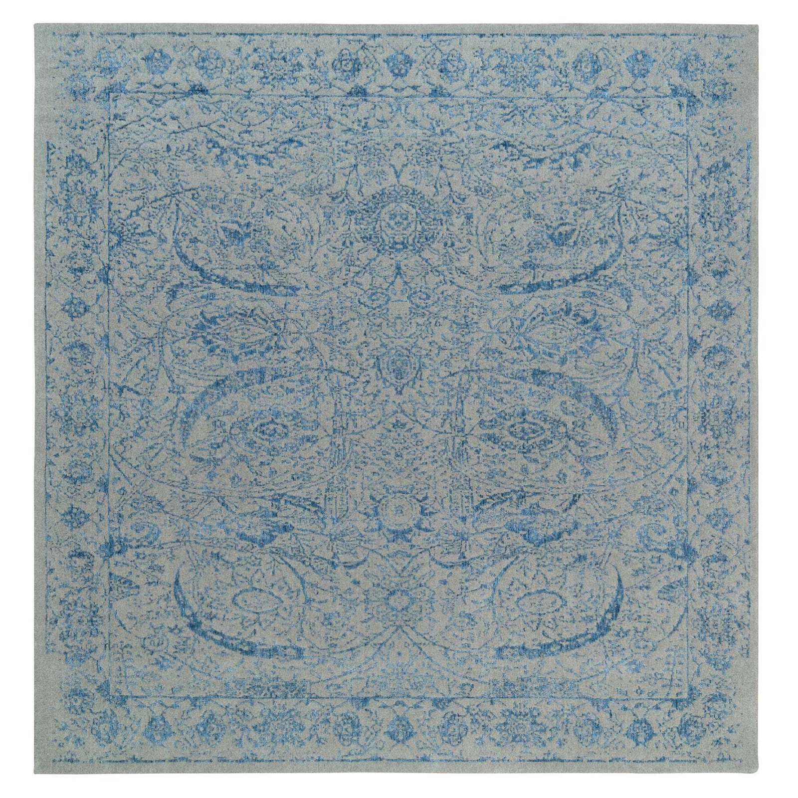 12'X12' Gray Fine Jacquard Hand Loomed Wool And Silk Square Rug