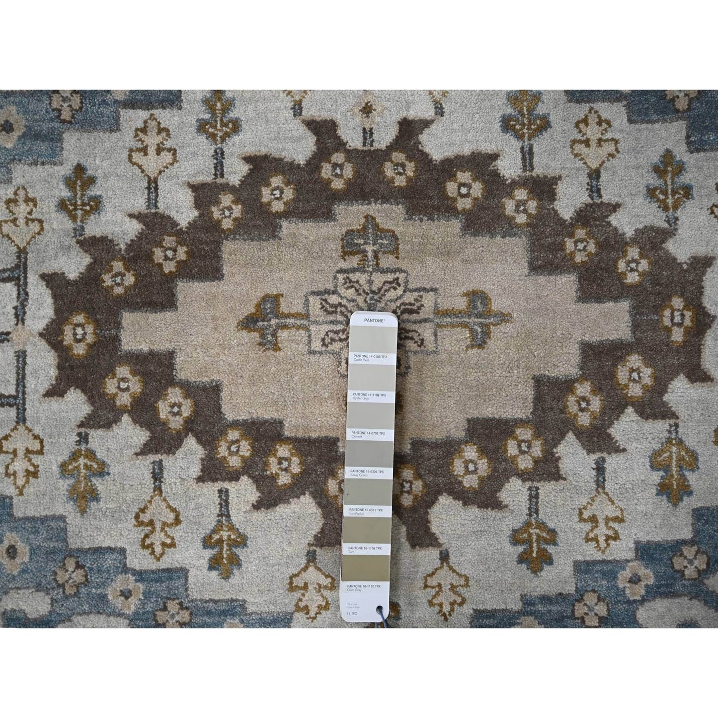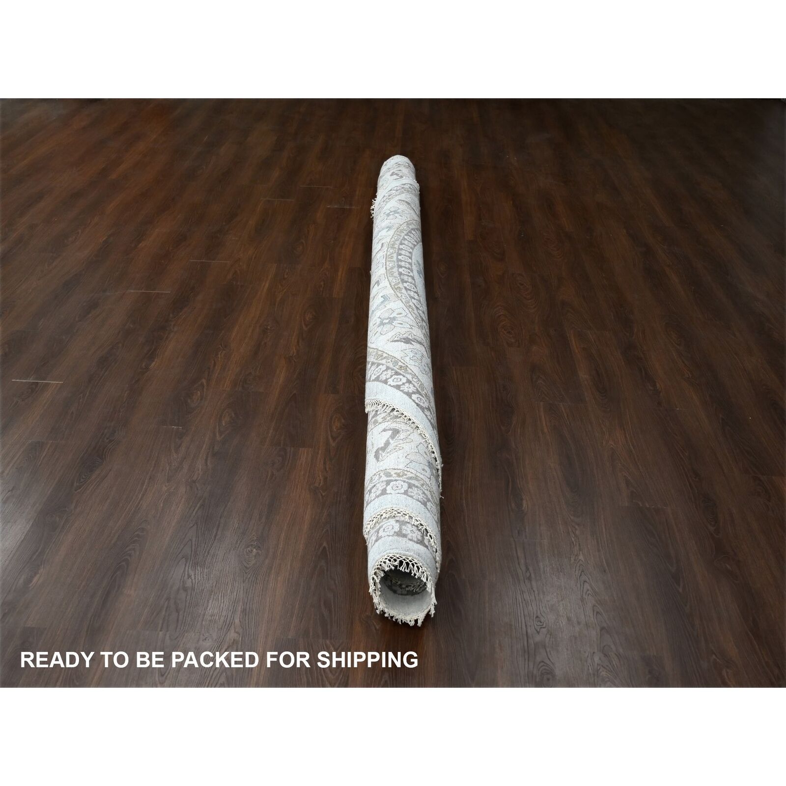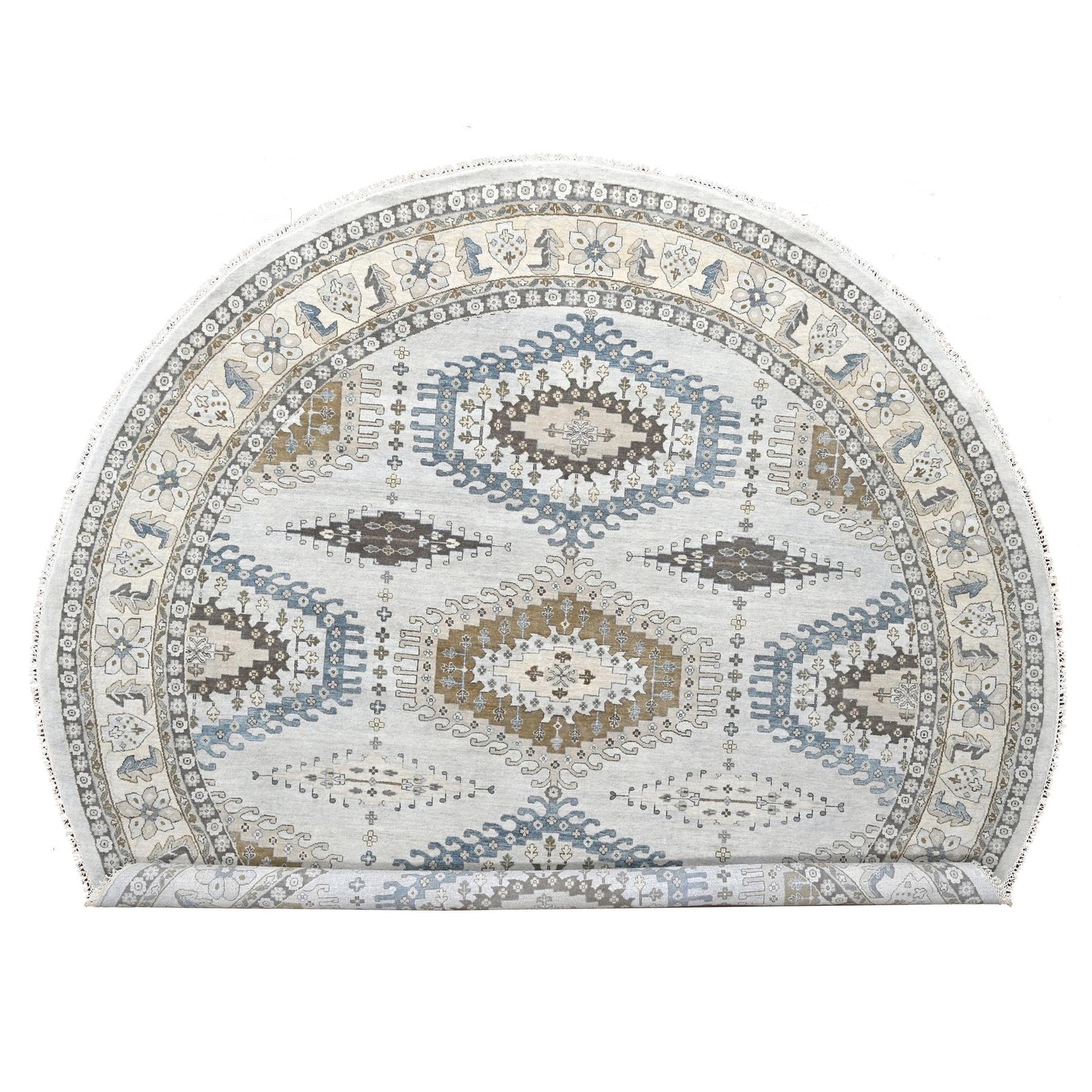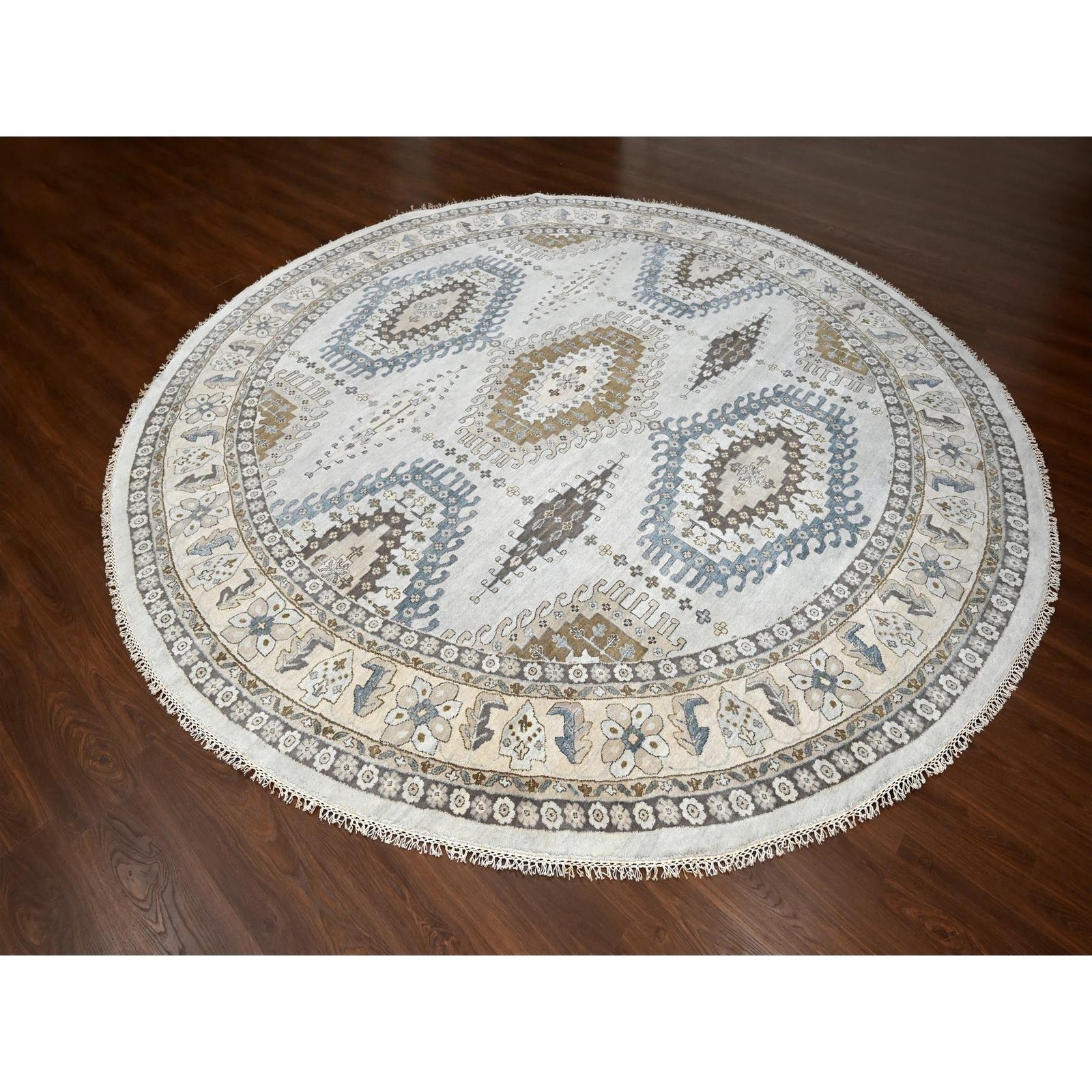12'X12' Gray Hand Knotted Farsian Geometrical Medallions Wool Round Rug