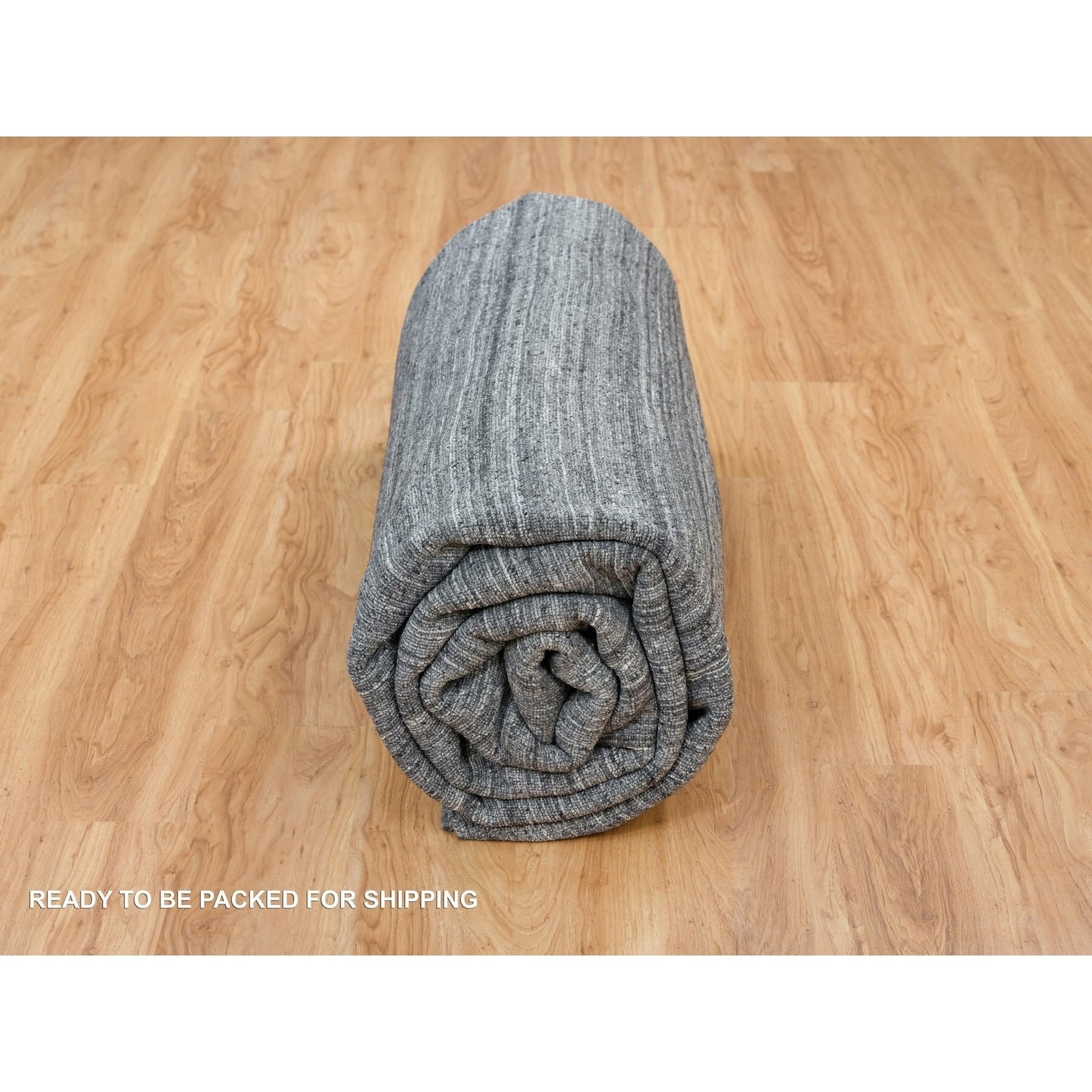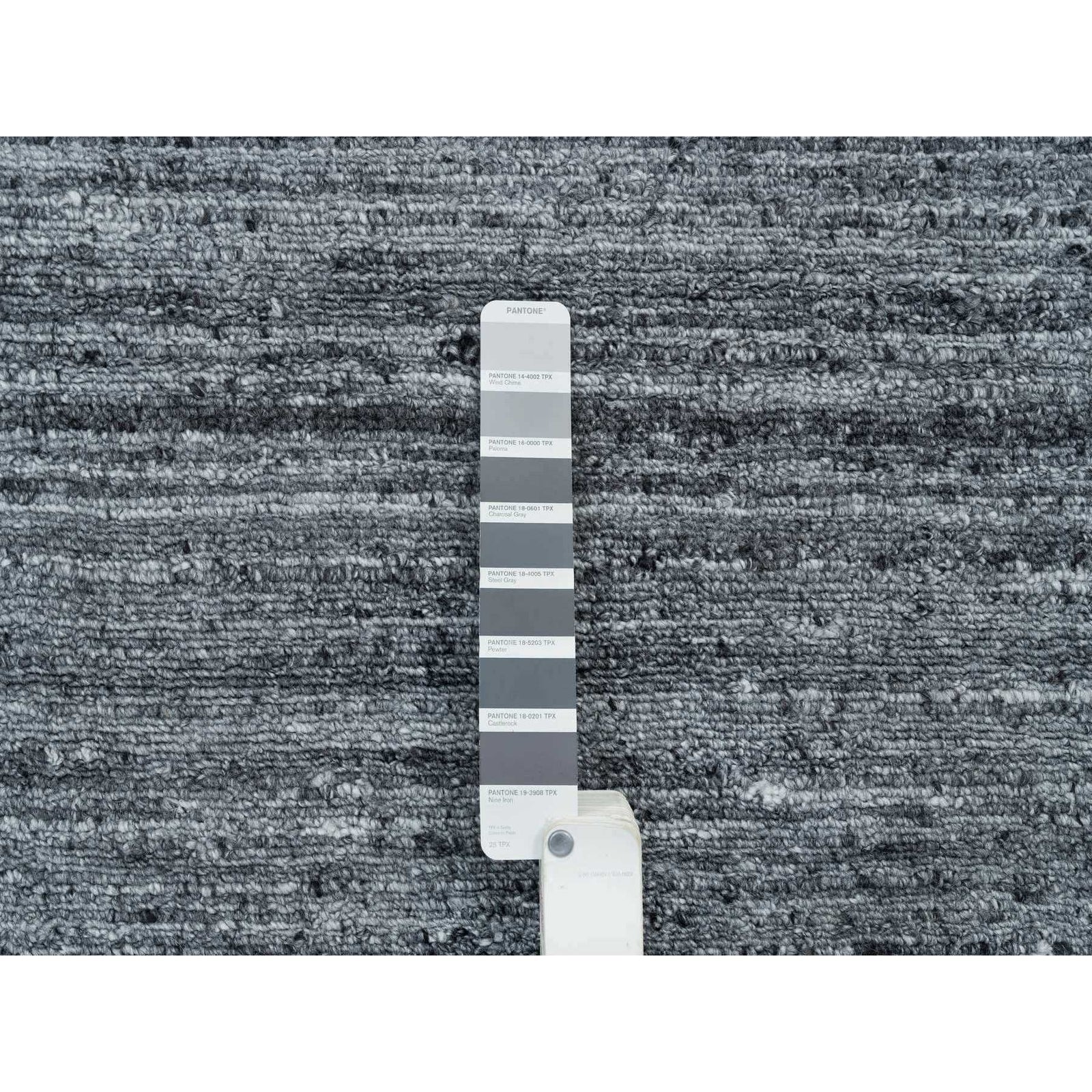 12'X12' Gray Modern Striae Design Natural Wool Hand Loomed Square Rug