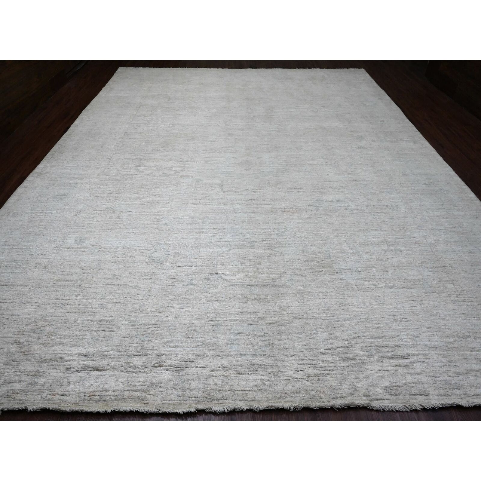 12'X14'8" White Hand Knotted Angora Oushak Leaf Design Wool Oversized Rug