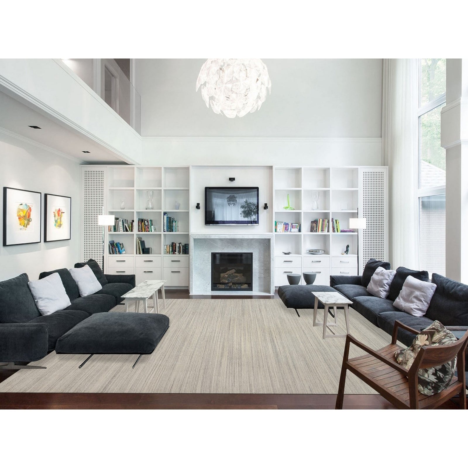 12'X14'9" Beige Plain Modern Design Hand Loomed Undyed Wool Oversized Rug