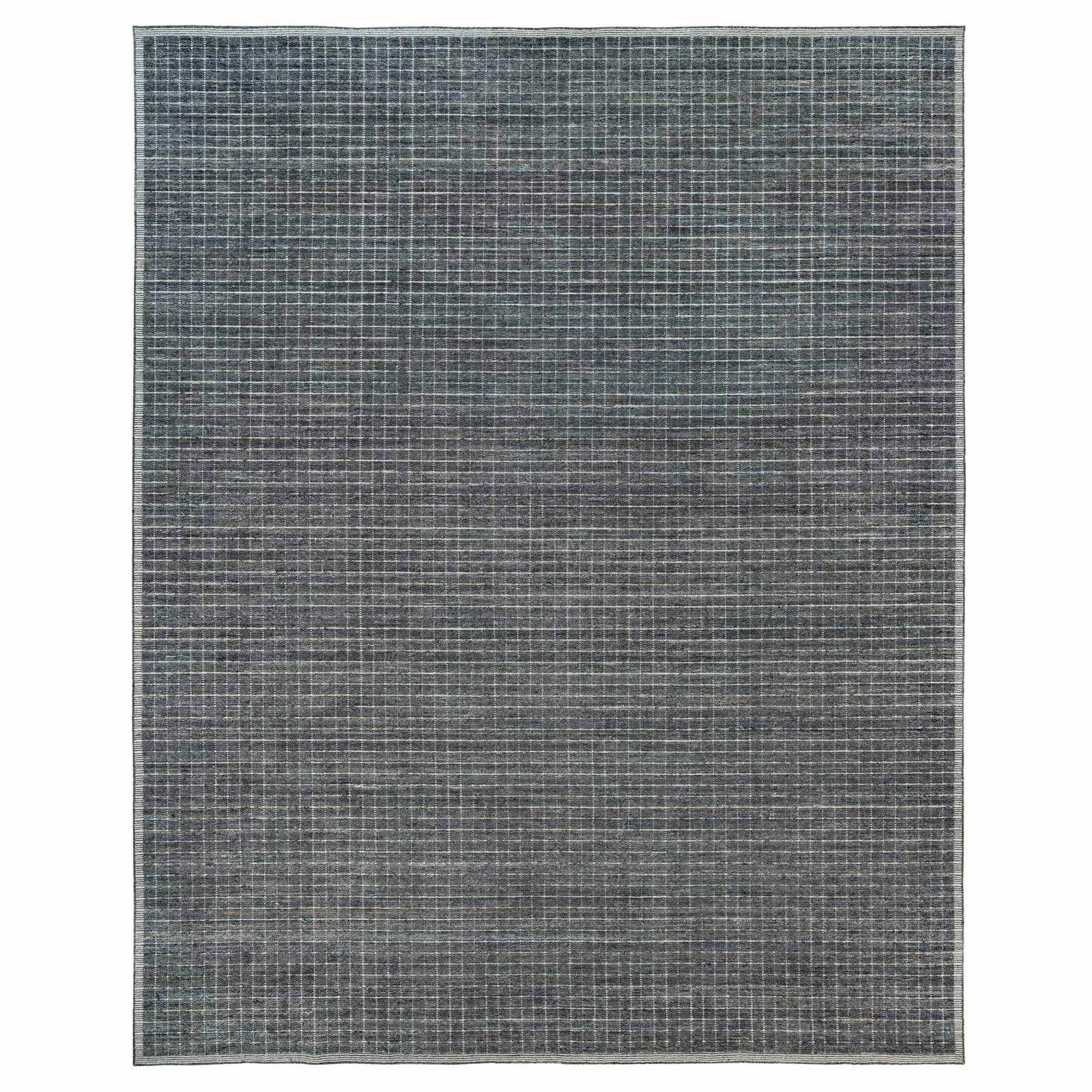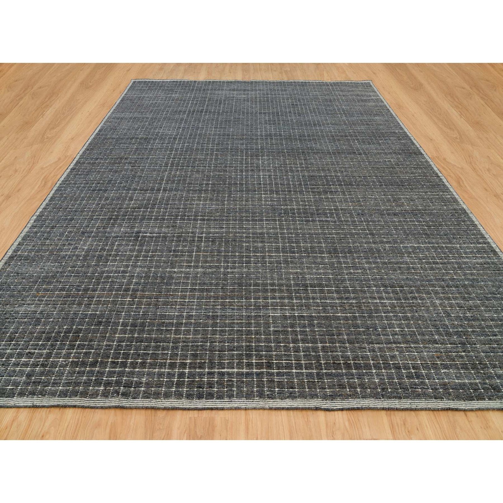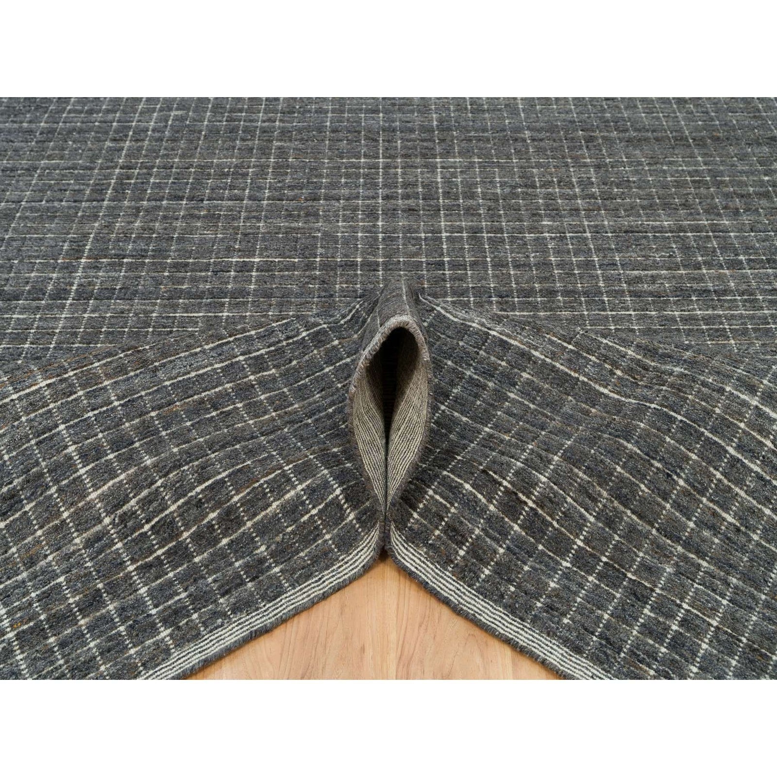 12'X14'9" Gray Loomed Knotted Modern Box Design Pure Wool Oversized Rug