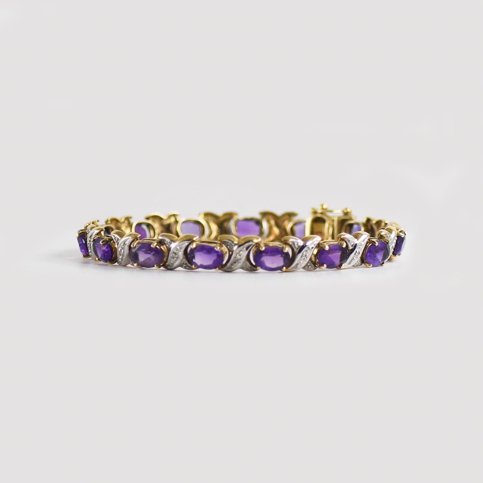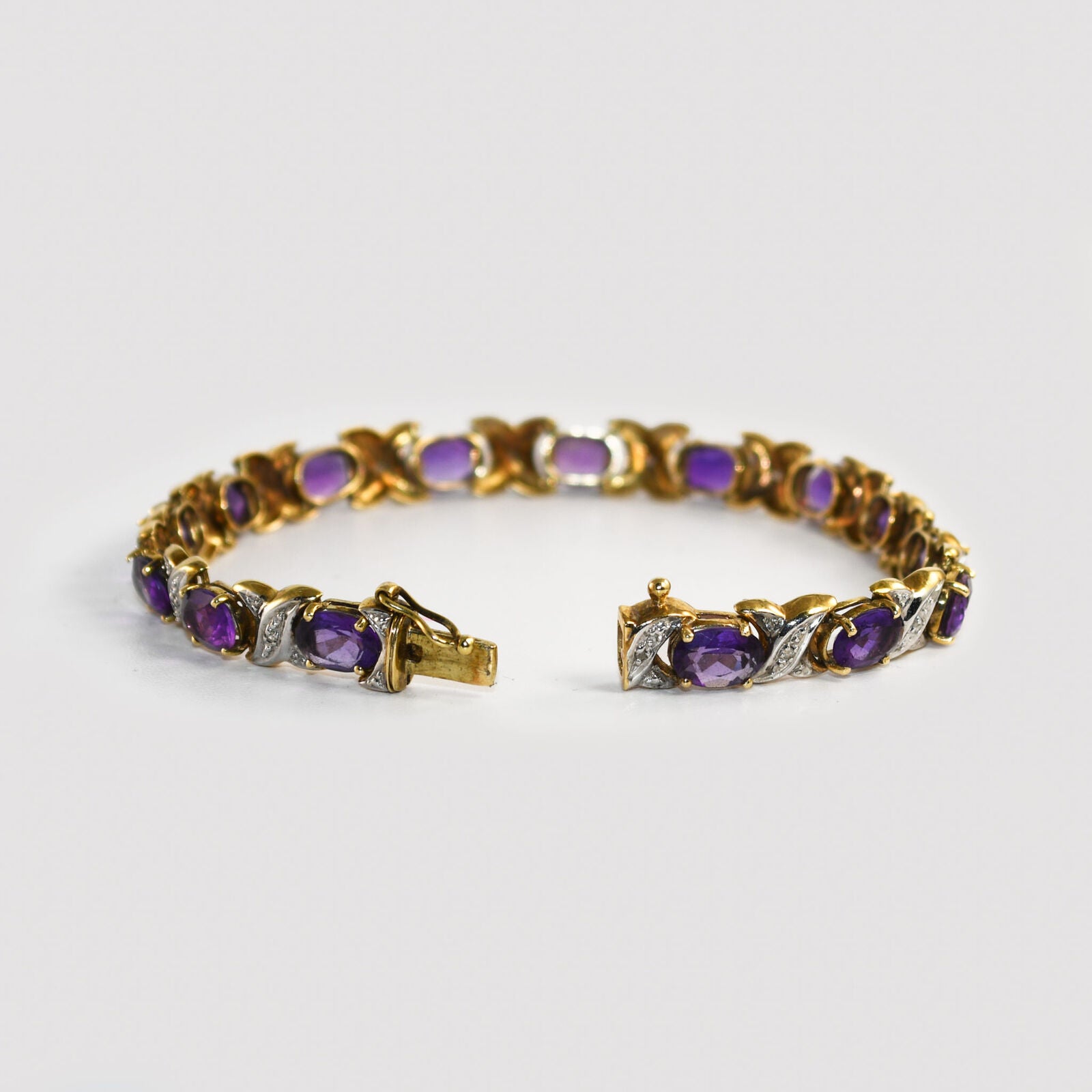 14K Yellow Gold Amethyst & Diamond Bracelet Weave