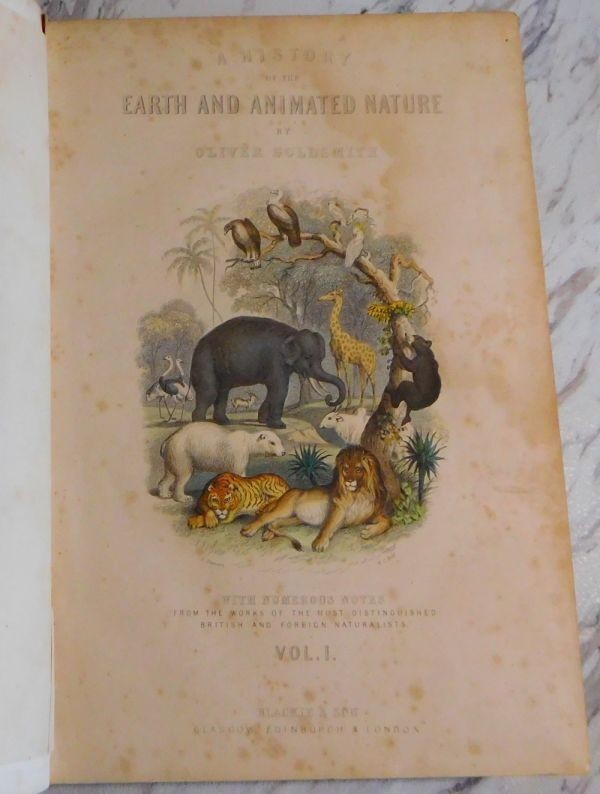 1866 Goldsmith History Of Earth And Animated Nature 2 Vols Blackie Hand-Color