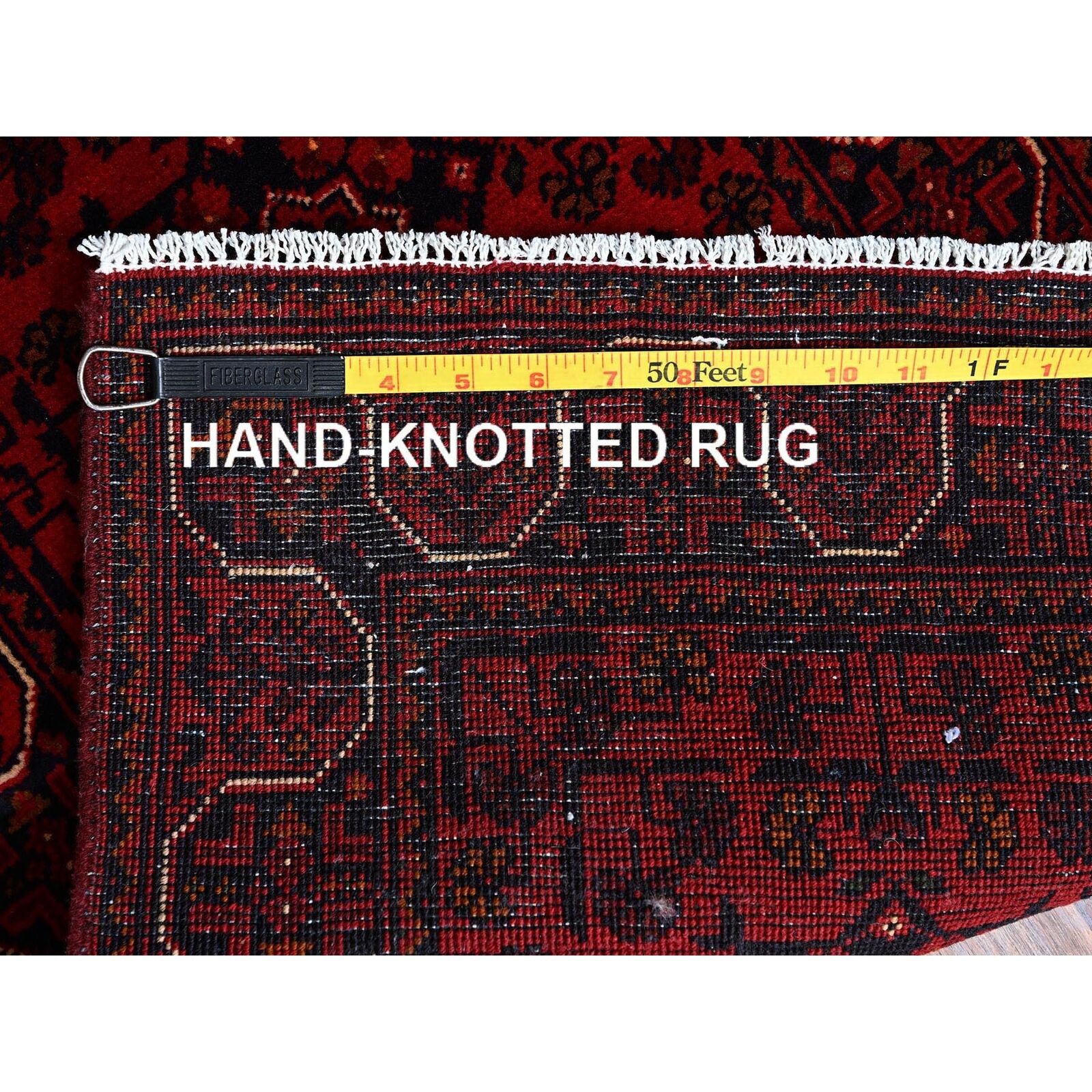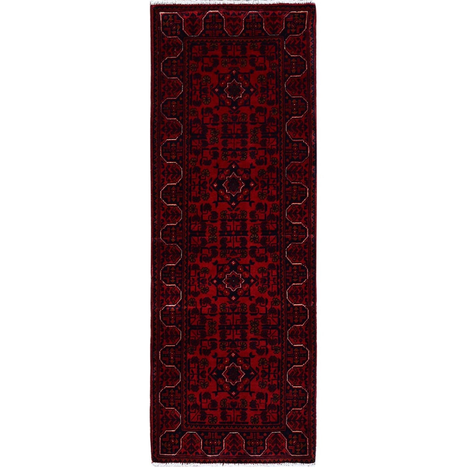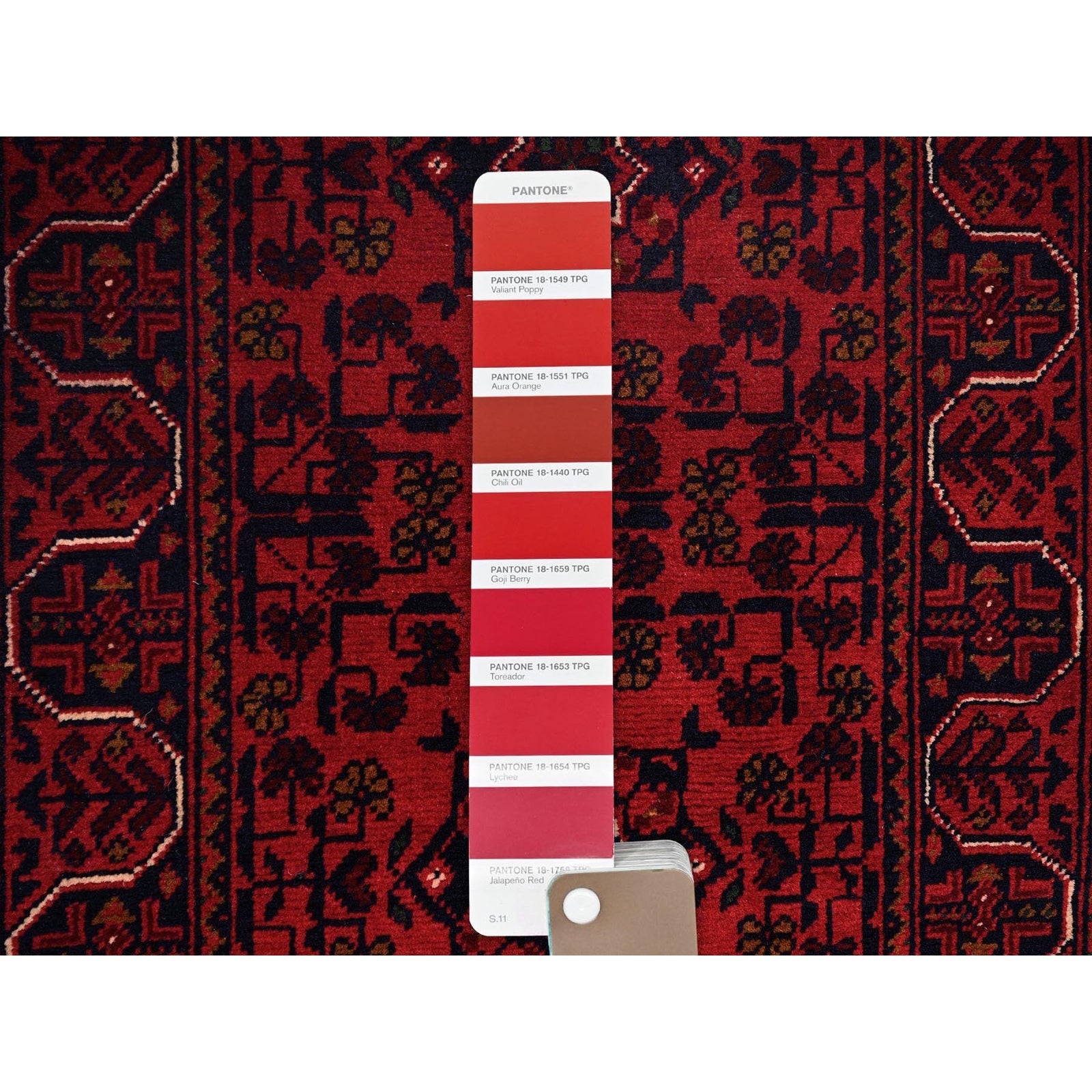 1'8"X4'9" Red Afghan Khamyab Geometric Pattern Hand Knotted Wool Runner Rug