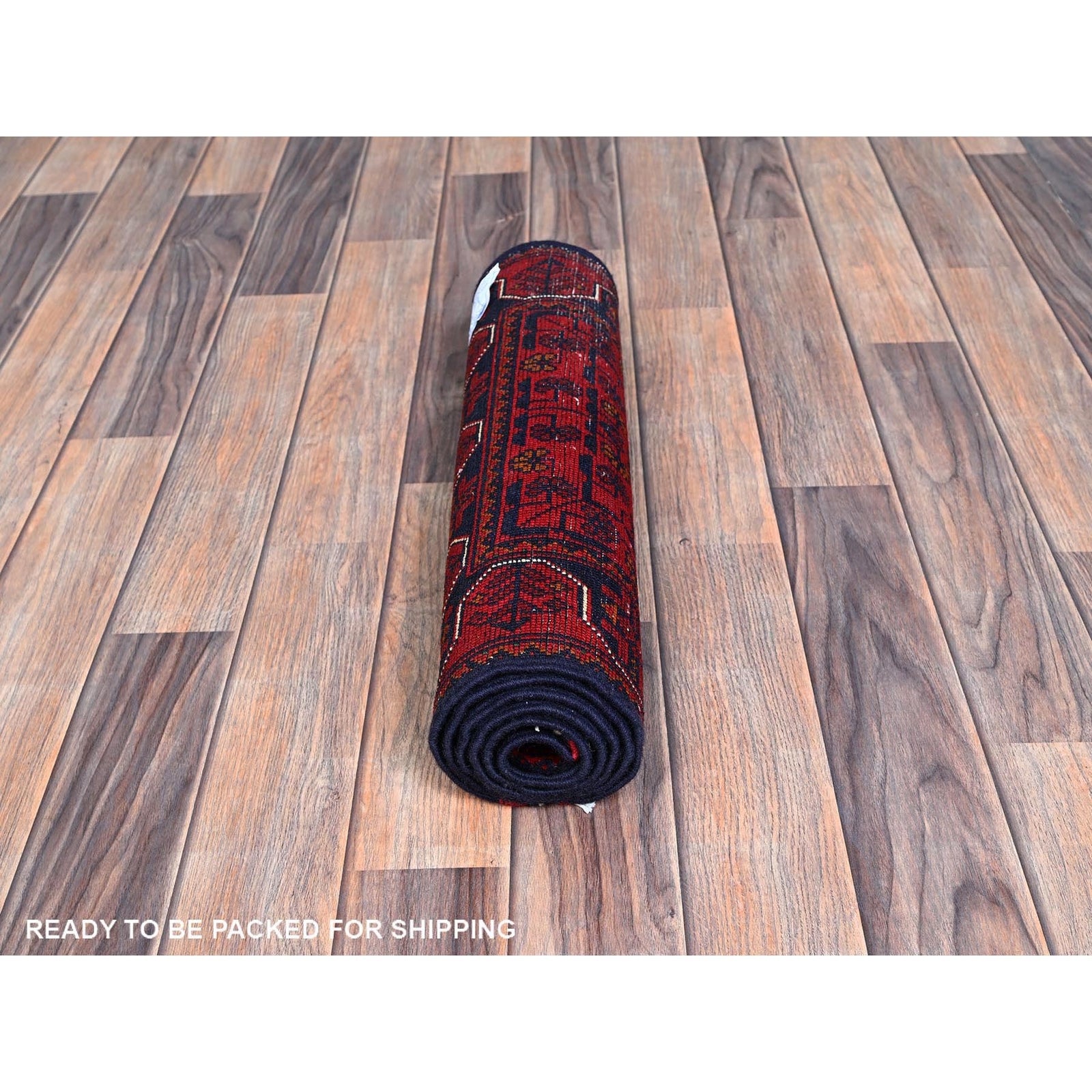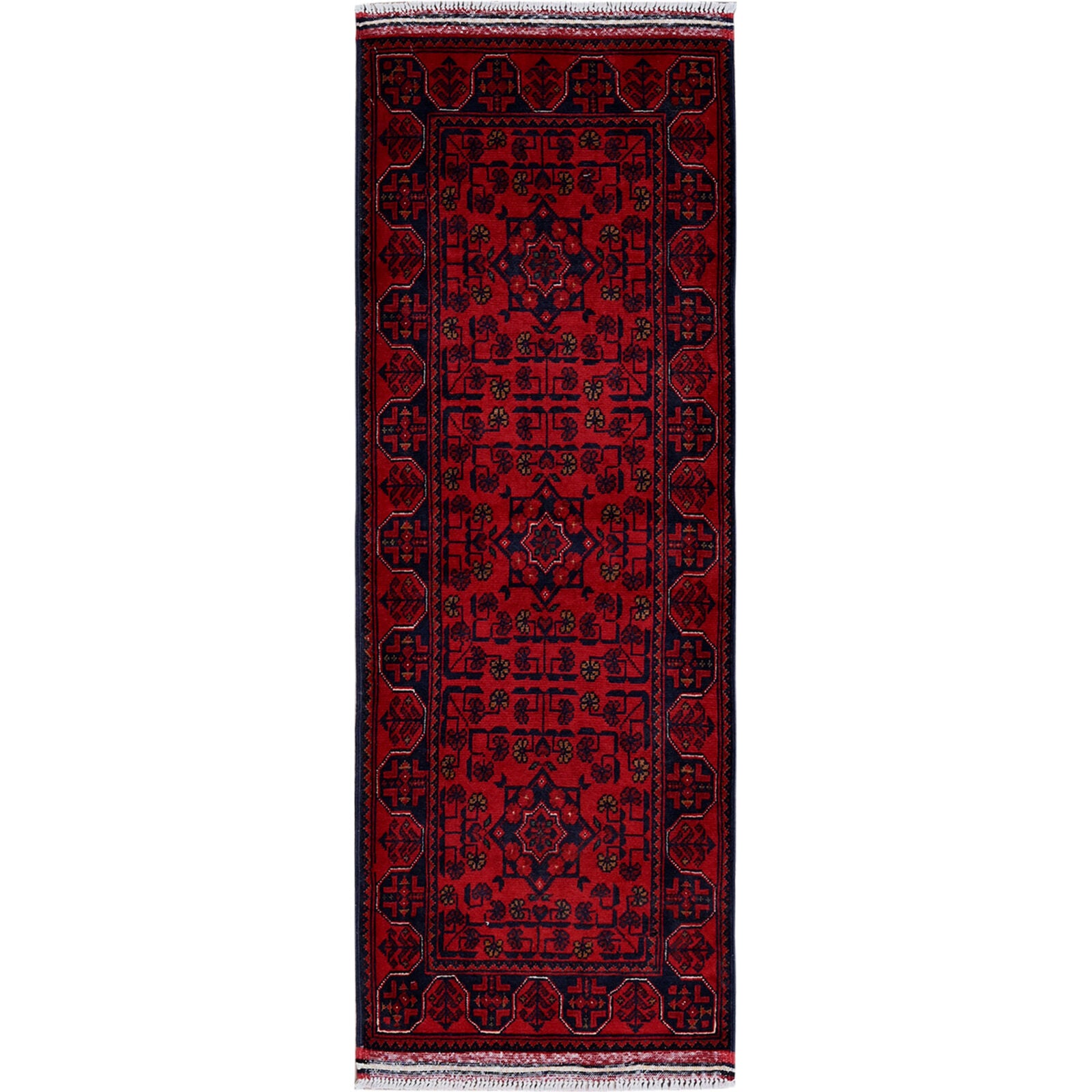 1'8"X4'9" Red Hand Knotted Afghan Khamyab Geometric Pattern Wool Runner Rug