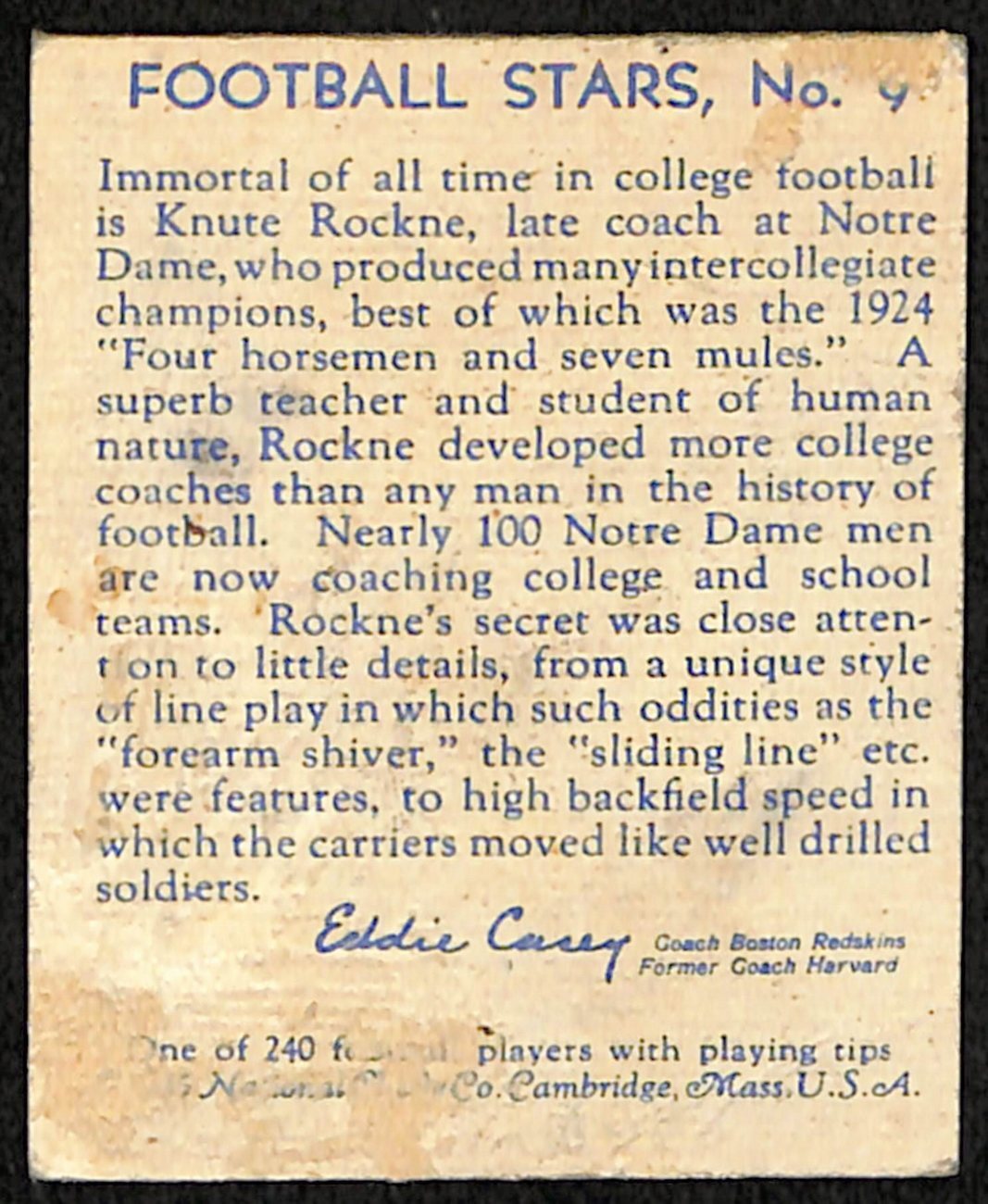 1935 National Chicle Football Knute Rochne Notre Dame #9 192140