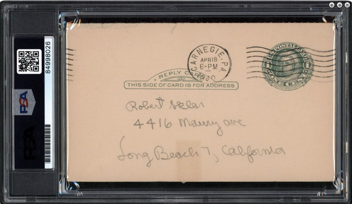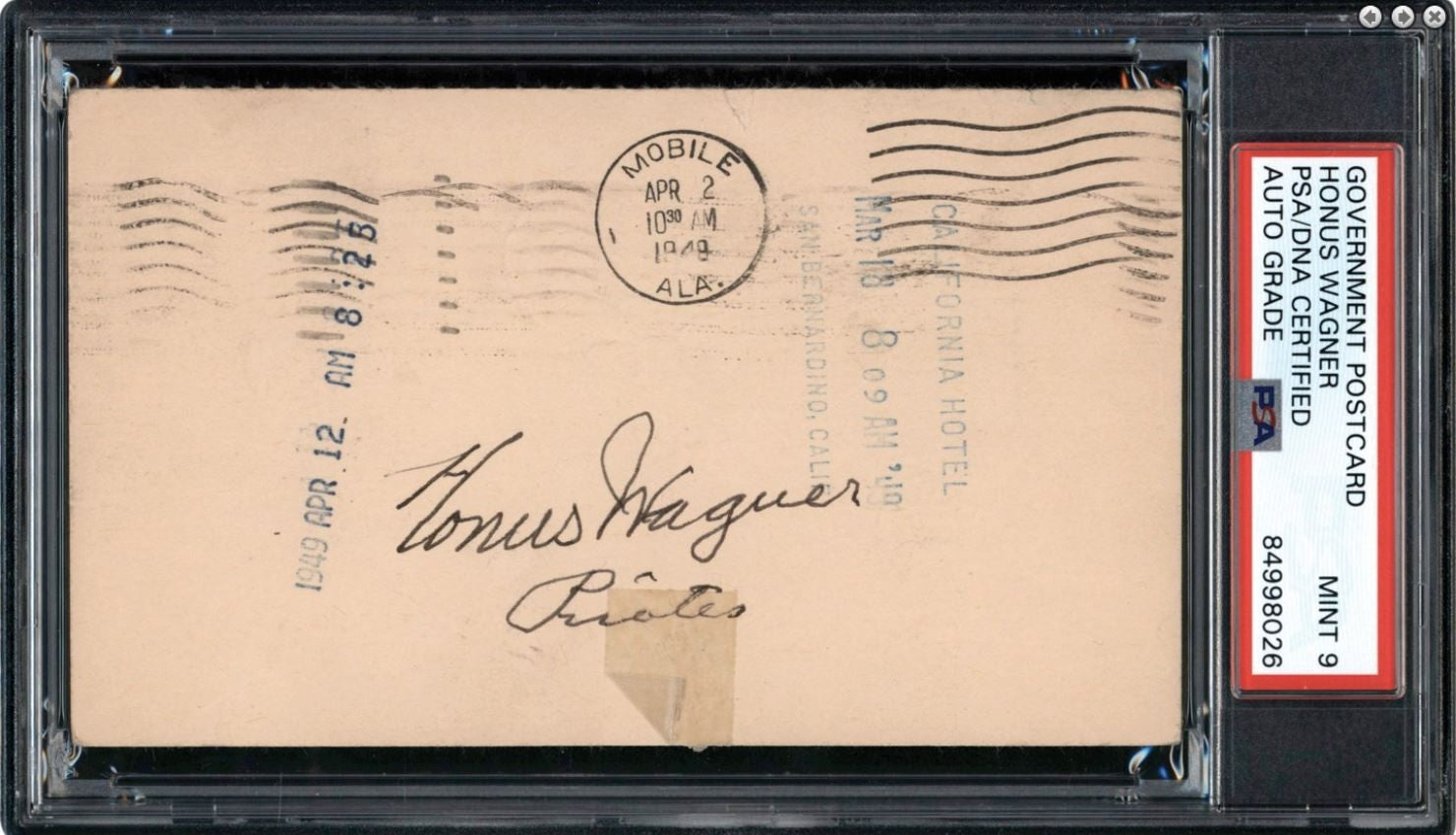 Productname: 1949 Honus Wagner HOF Signed Government Postcard Pirates (PSA MIN