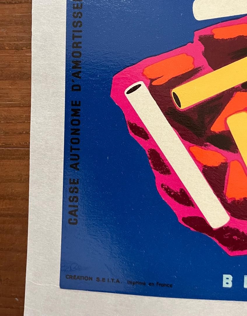 1960S Gitanes Caporal Poster By Bernard Villemot French Tobacco Ad, Deadstock