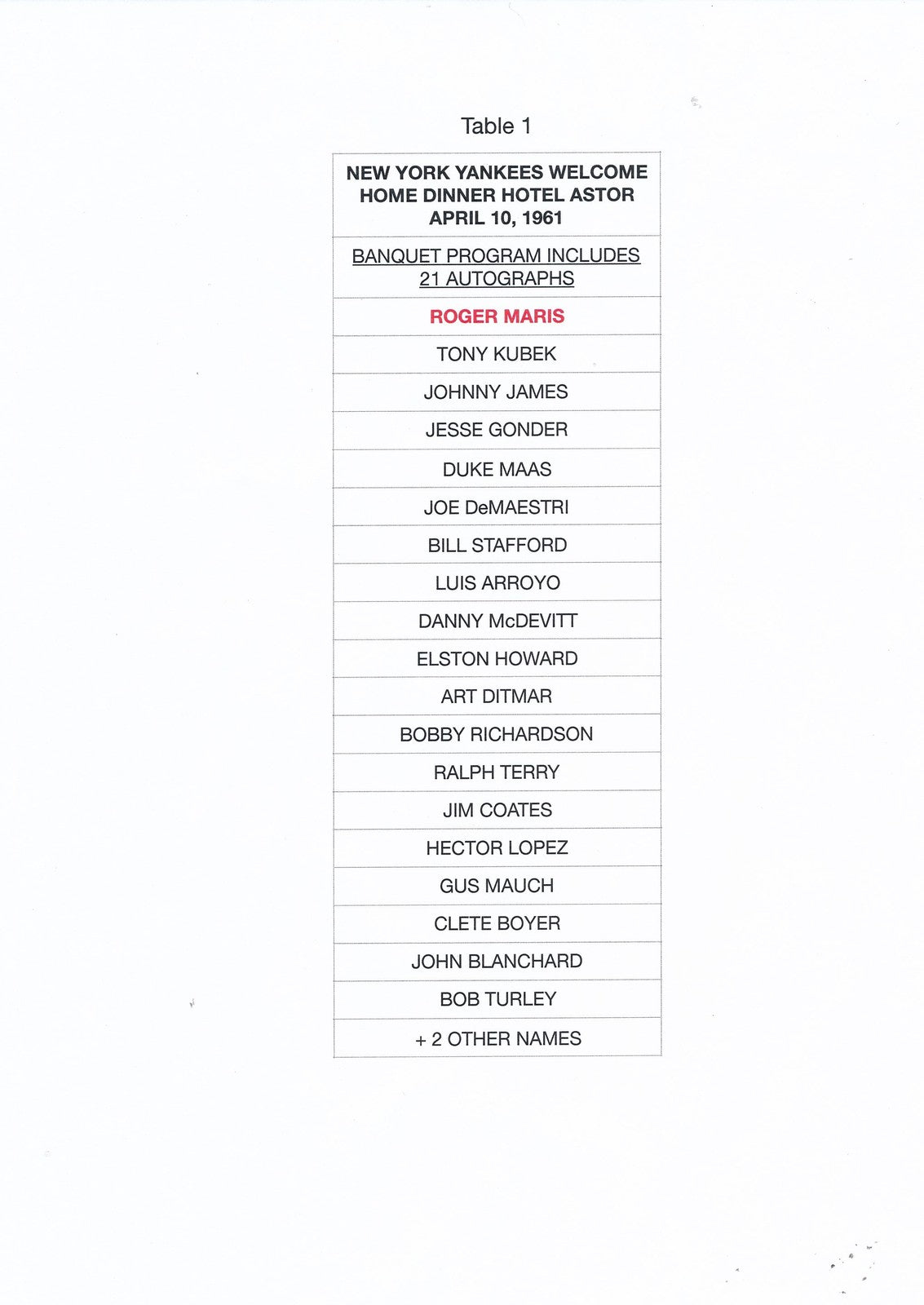 1961 Yankees Autographed Banquet Program W/ Roger Maris Bas/Beckett 191779