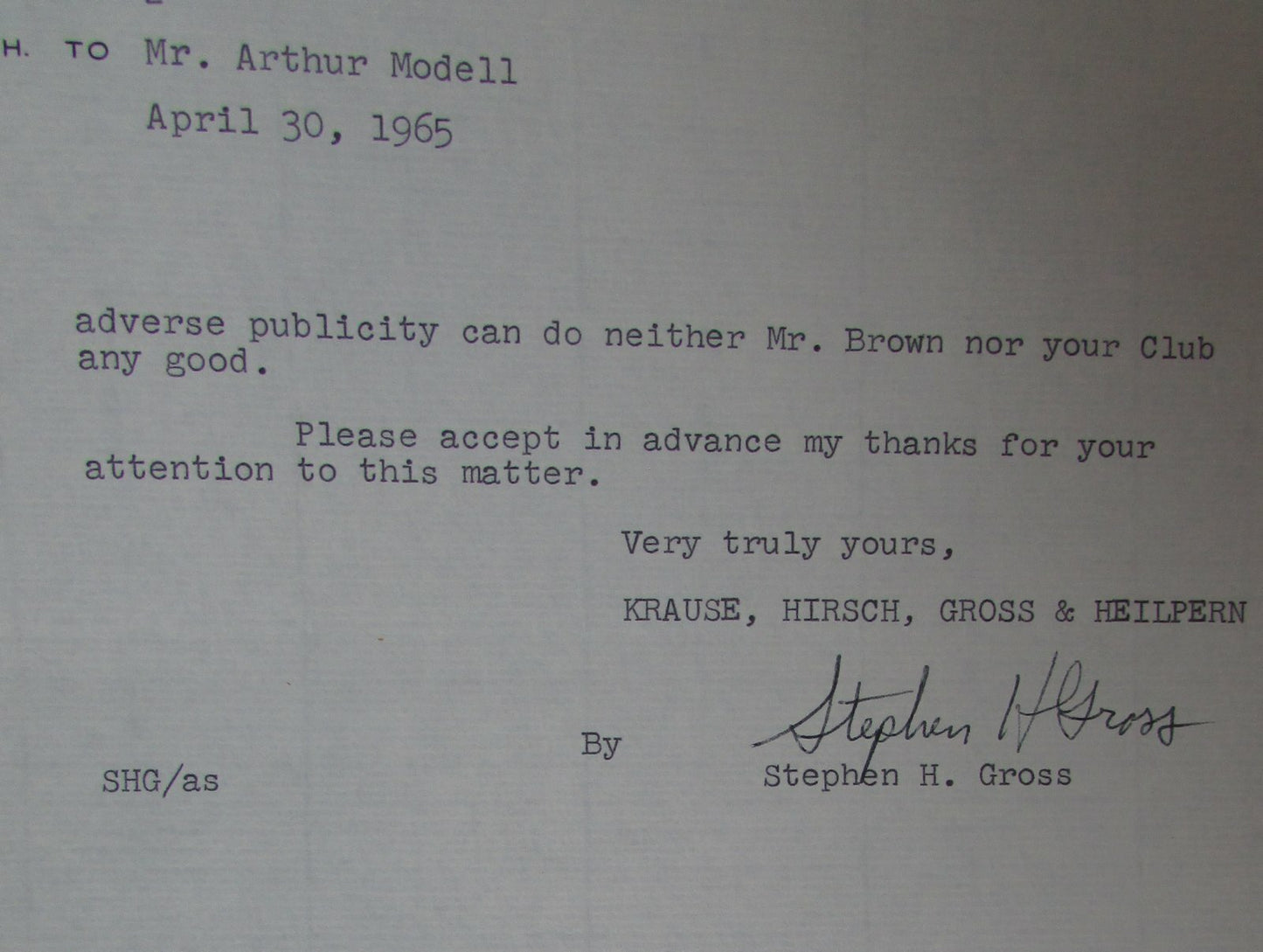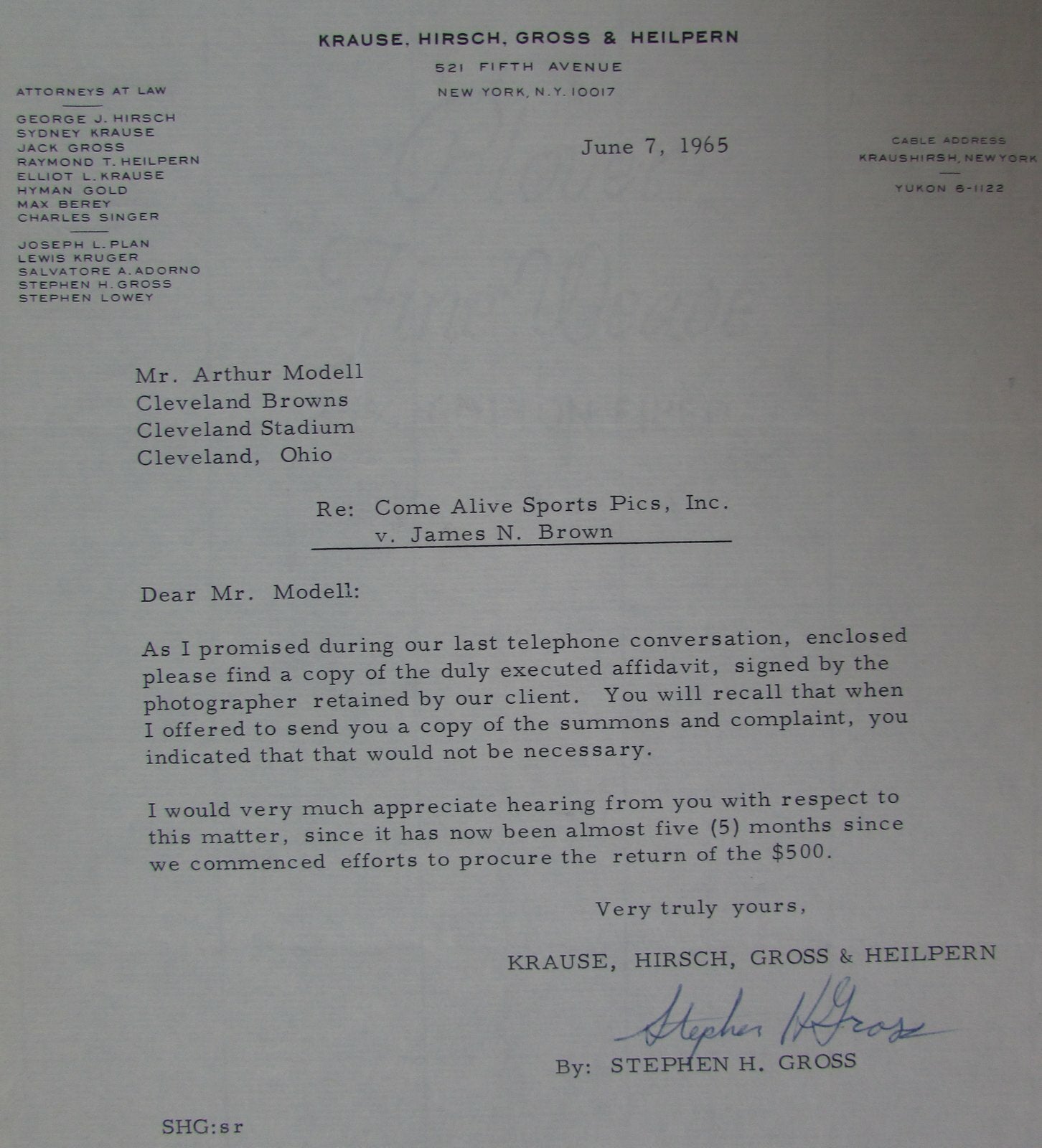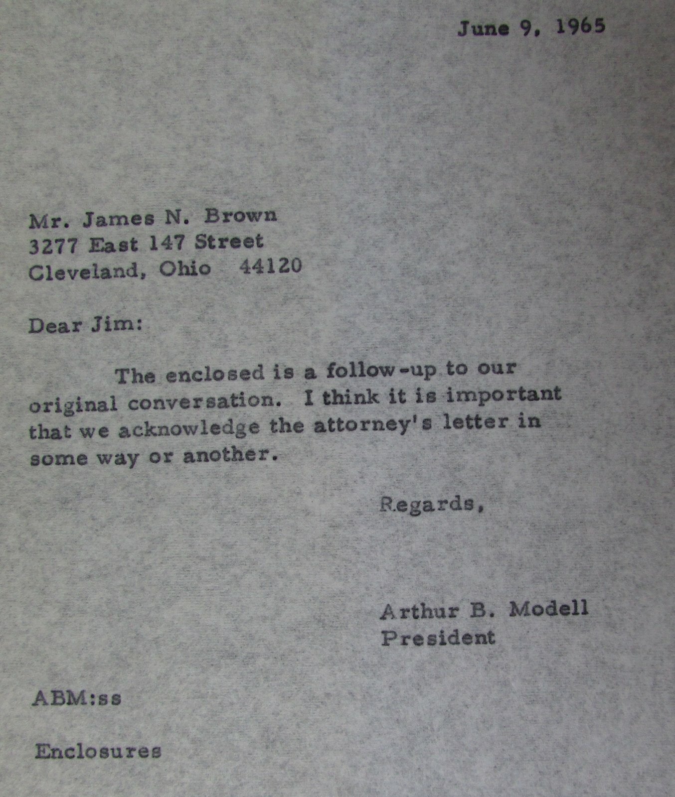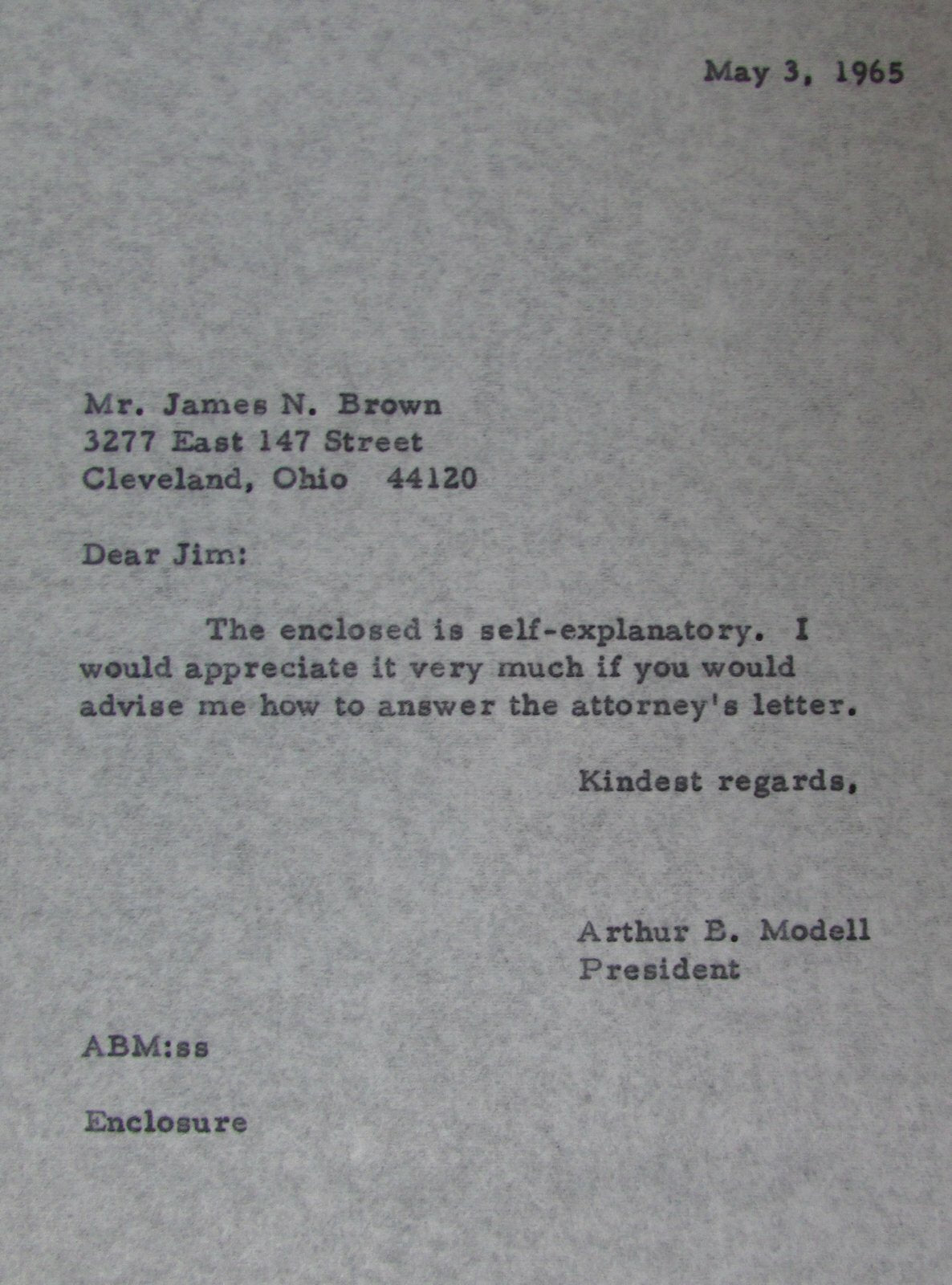 1965 Letters To And From Art Modell About Jim Brown Picture Lawsuit 145103