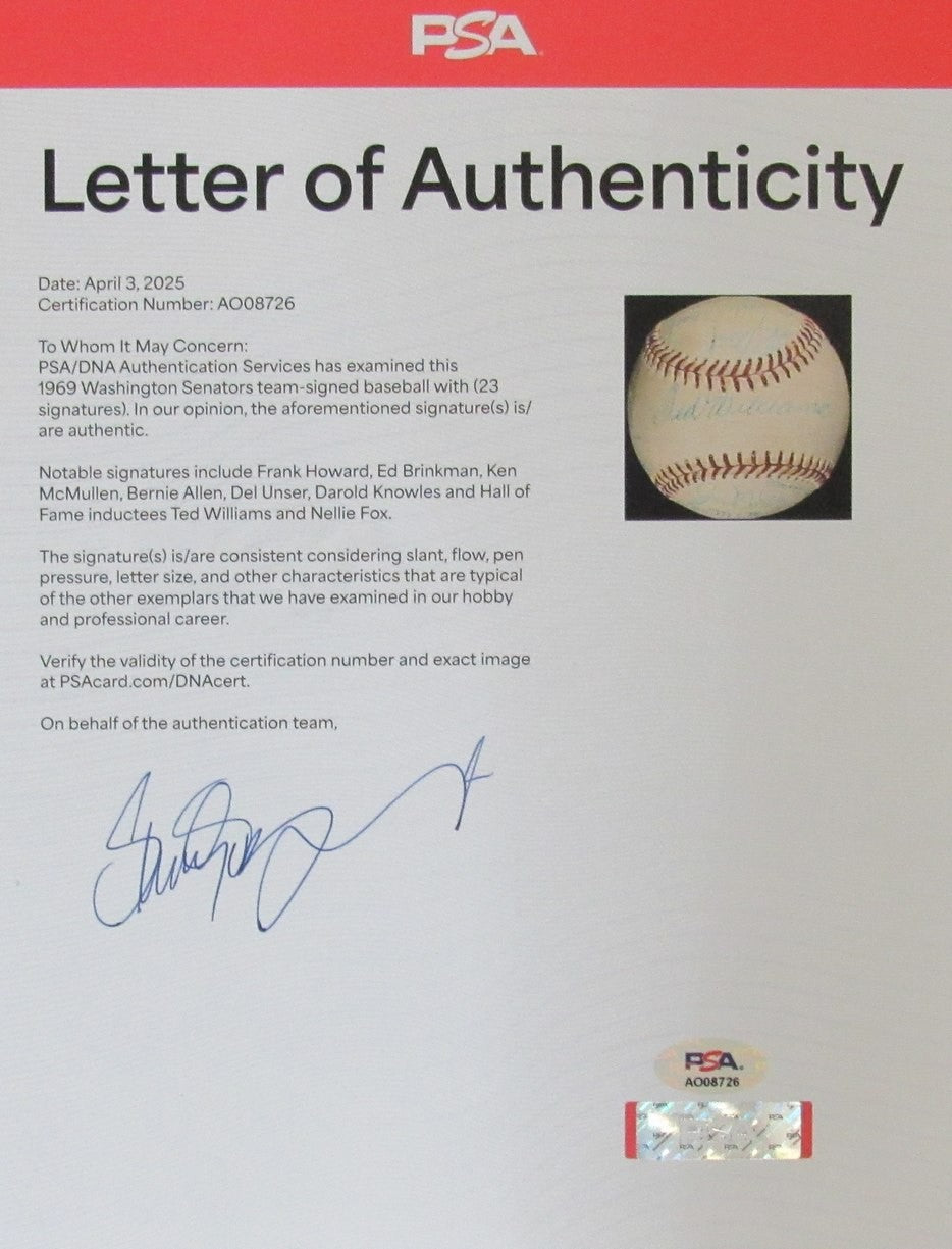 1969 Washington Senators Team-Signed By (23) Oal