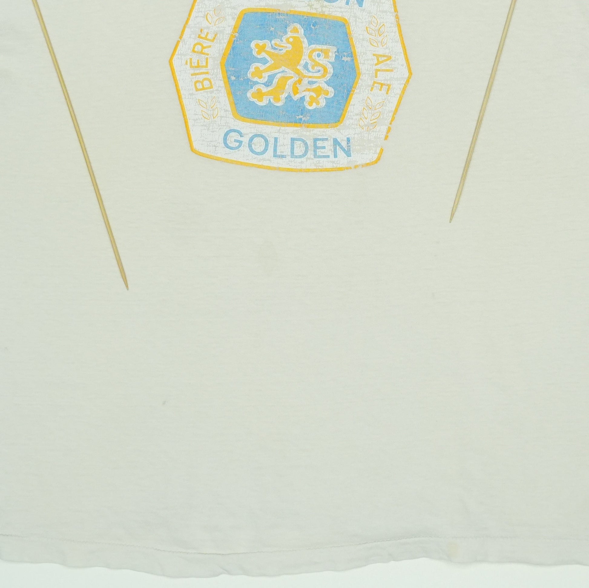 Original vintage 1970s Molson Golden Beer Champion Blue Bar Shirt. This is a true vintage shirt, not a modern reproduction. Sizes vary so please use measurements for best idea on fit. Front and back graphics. Shirt is in excellent condition, no holes, no stains. This shirt will arrive washed and ready to wear.