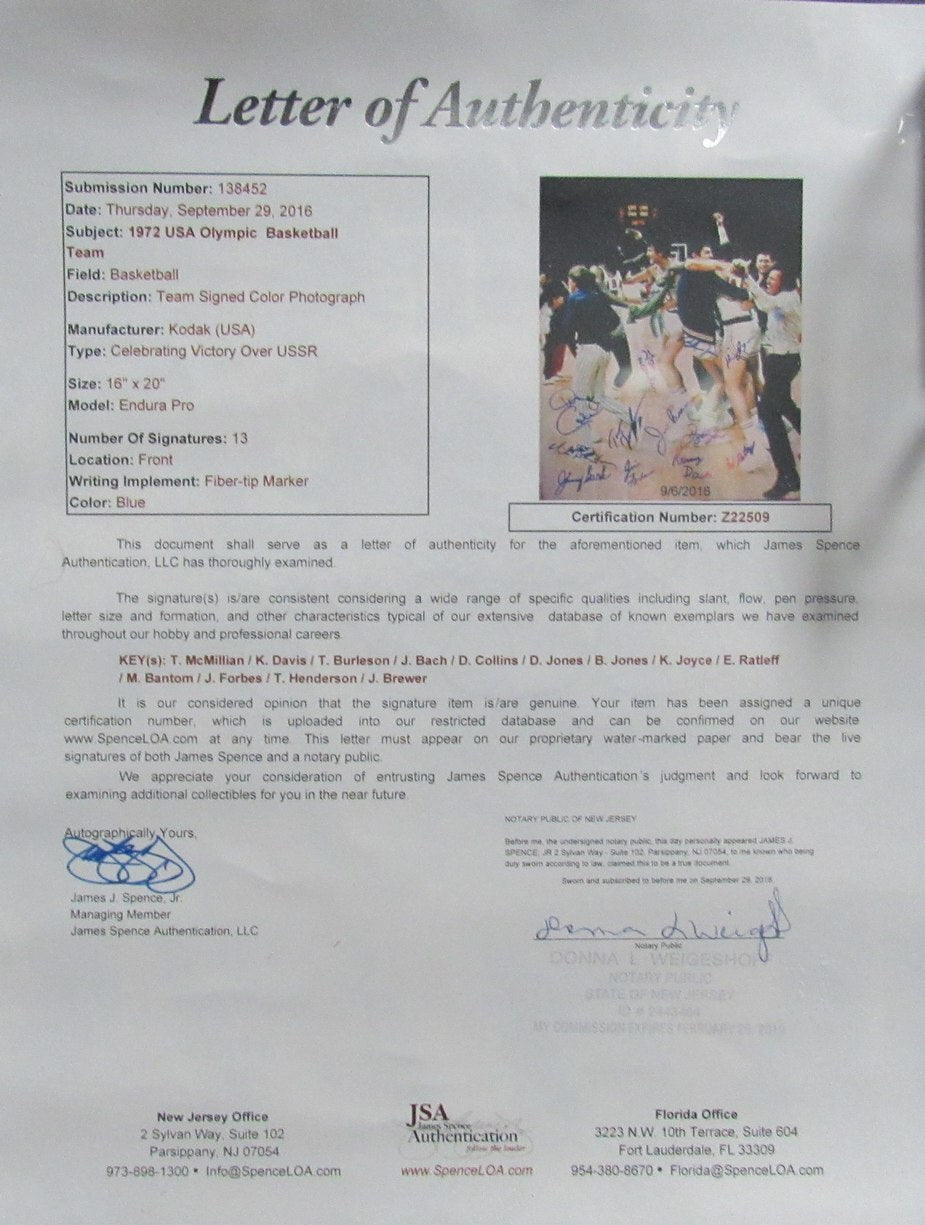 1972 Team Usa Basketball 13X Team Signed 16X20 Photo Olympics Jsa 193121