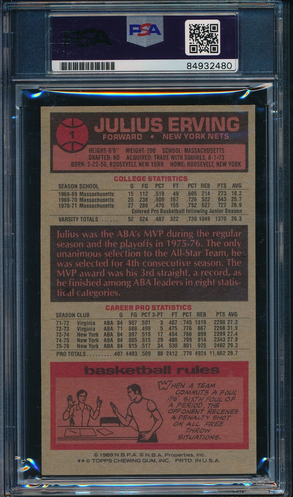 1976-77 Topps #1 Signed/Auto Julius Dr. J Erving Hof Philadelphia 76Ers Psa/Dna