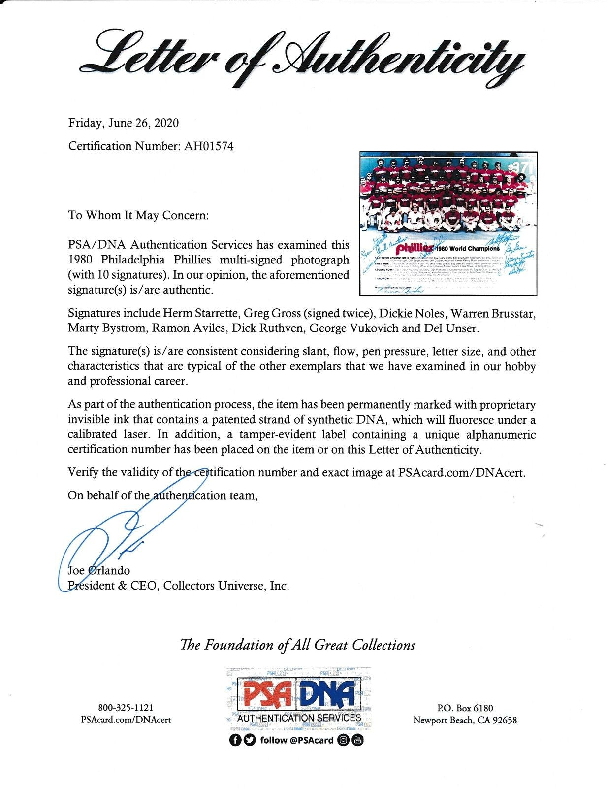Autograph Authentication: PSA/DNA