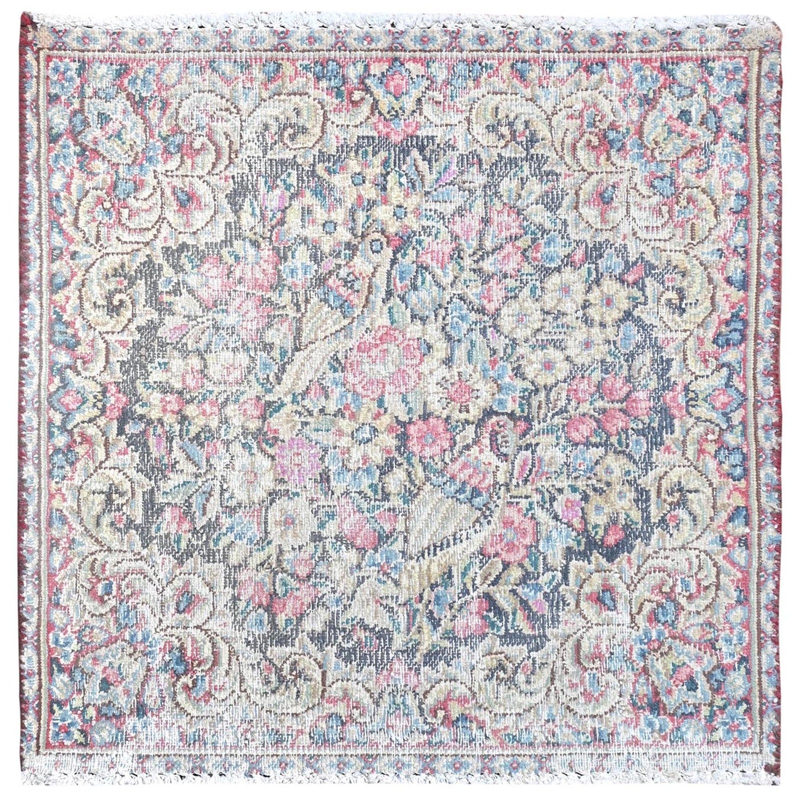 1'9"X1'9" Colorful Hand Knotted Old Farsian Karman Worn Wool Square Rug