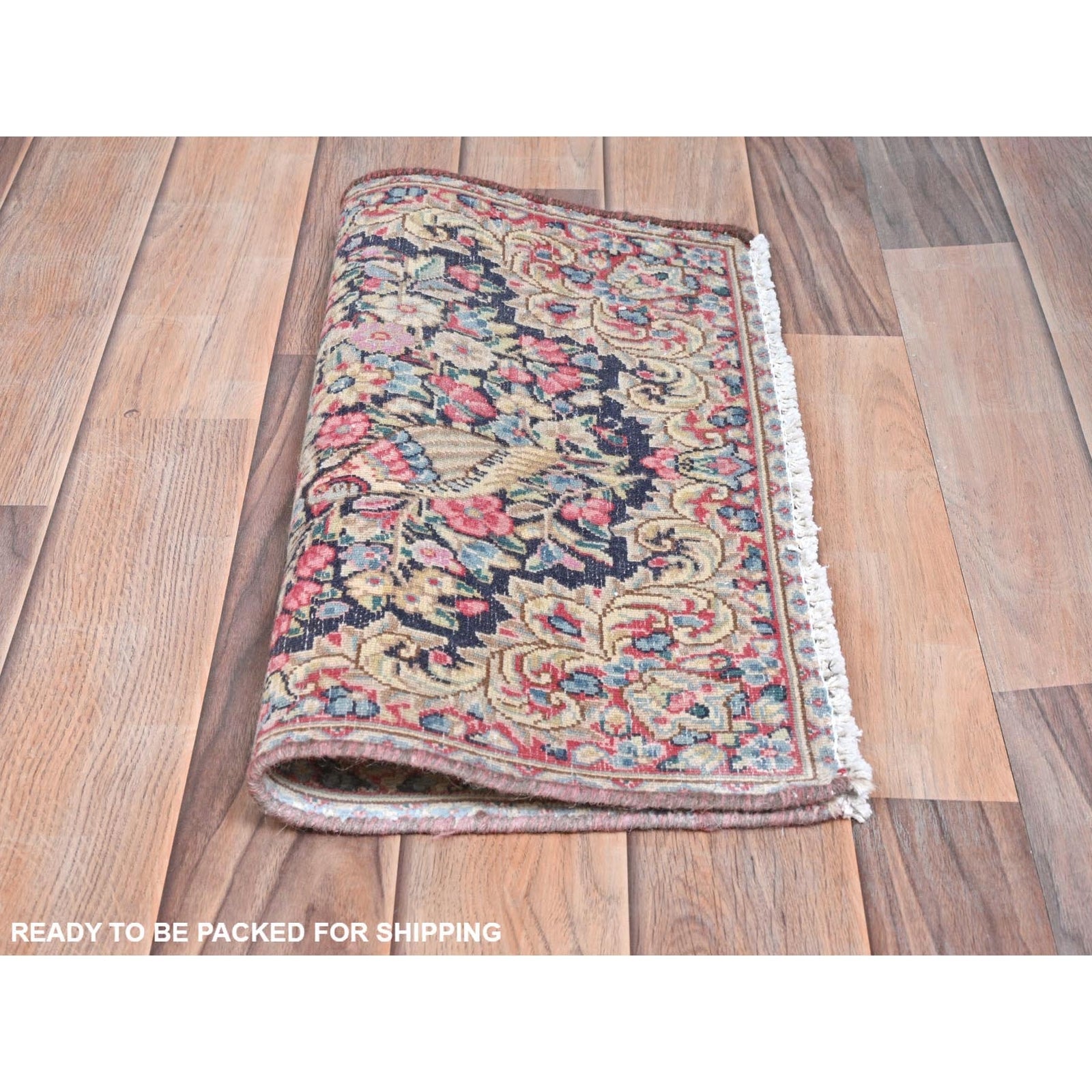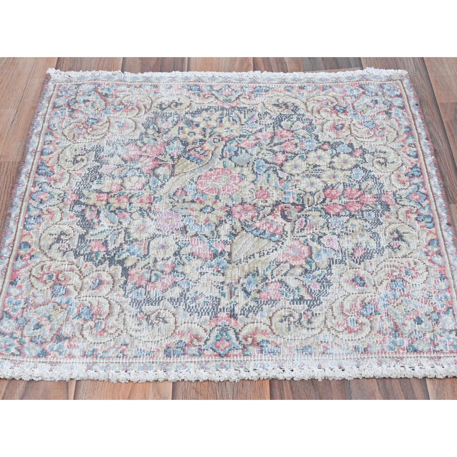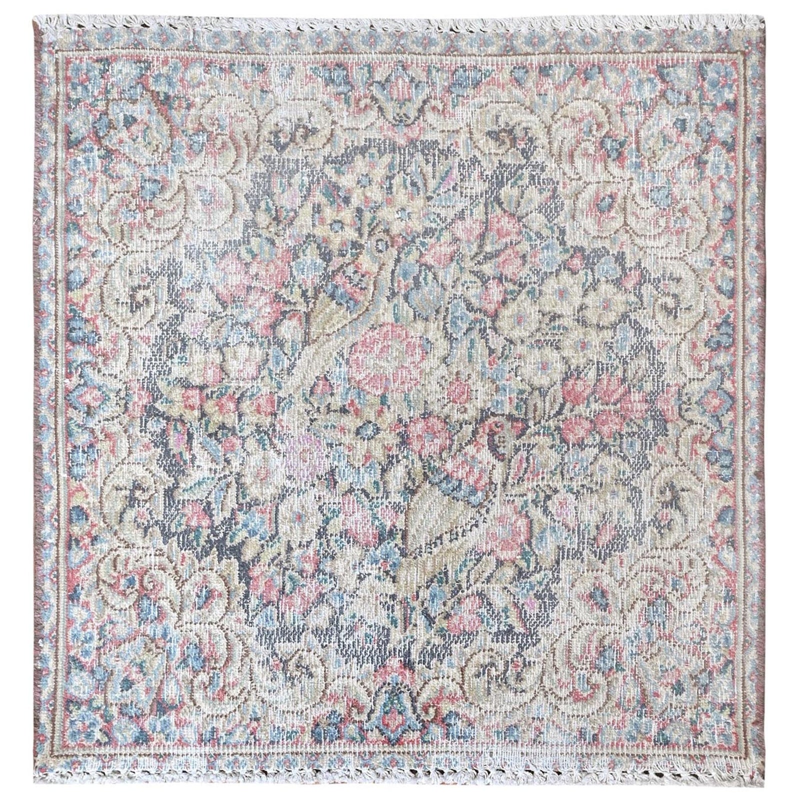 1'9"X1'9" Colorful Old Farsian Karman Worn Wool Hand Knotted Square Rug