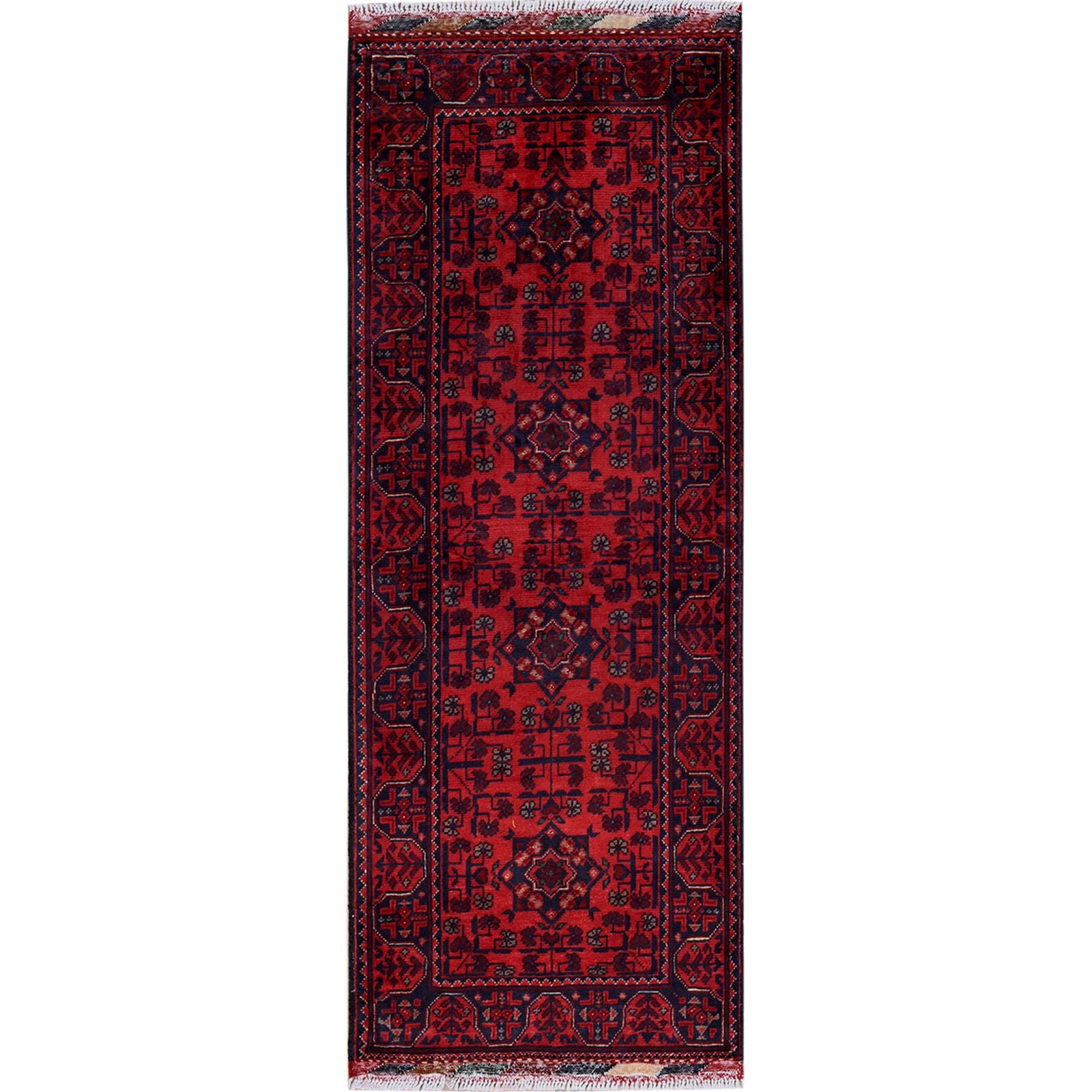 1'9"X4'9" Red Afghan Khamyab Geometric Design Hand Knotted Wool Runner Rug