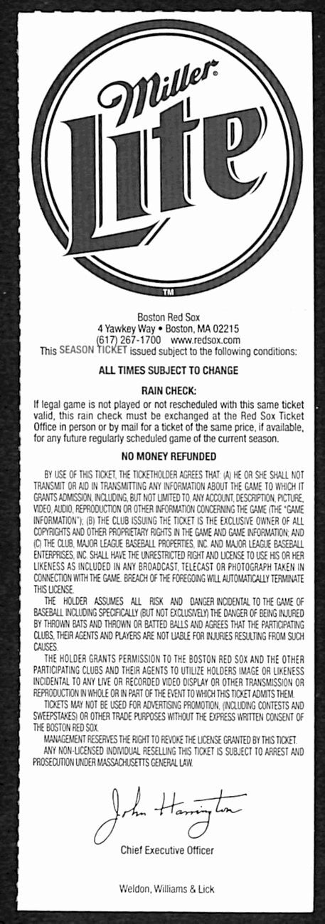 2001 Ticket Red Sox-Tex Hatteburg Hits Into Triple Play/Grand Slam Same Game
