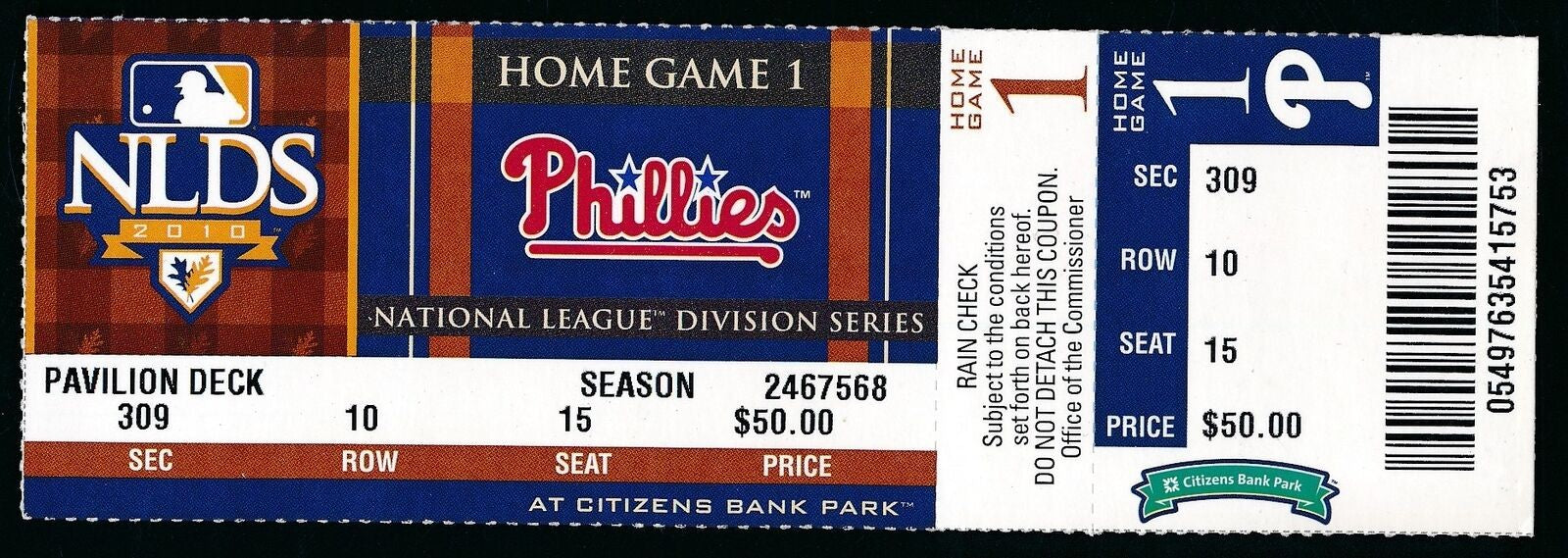 2010 Nlds Game 1 Phillies Vs. Reds Full Ticket Roy Halladay No-Hitter 177147