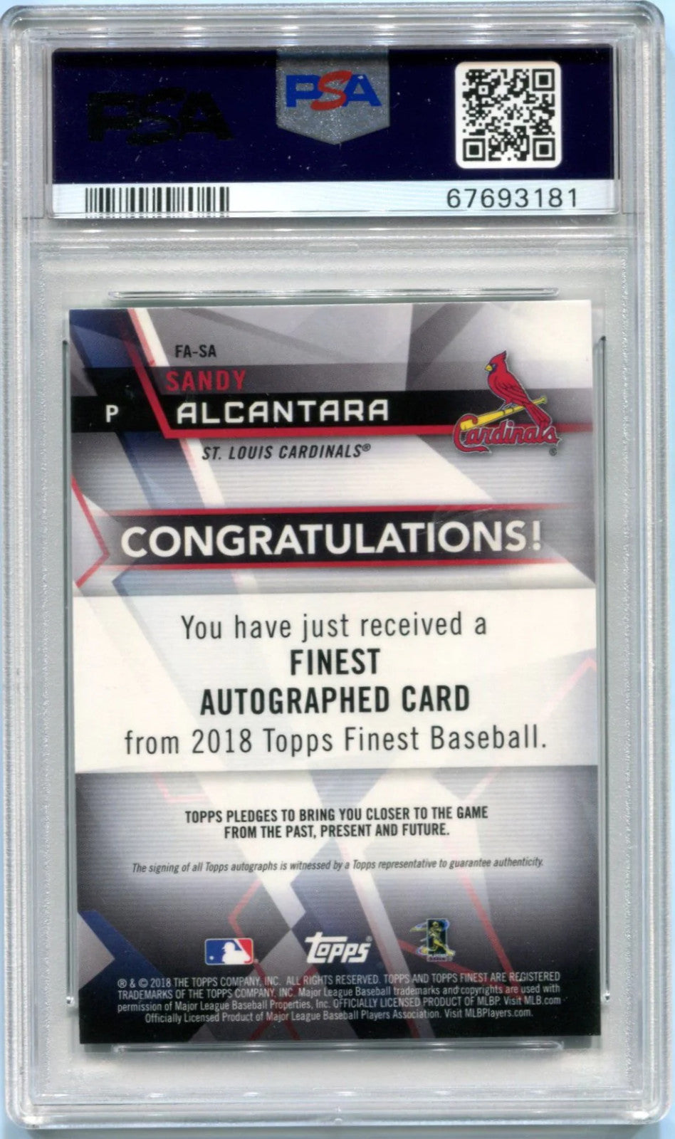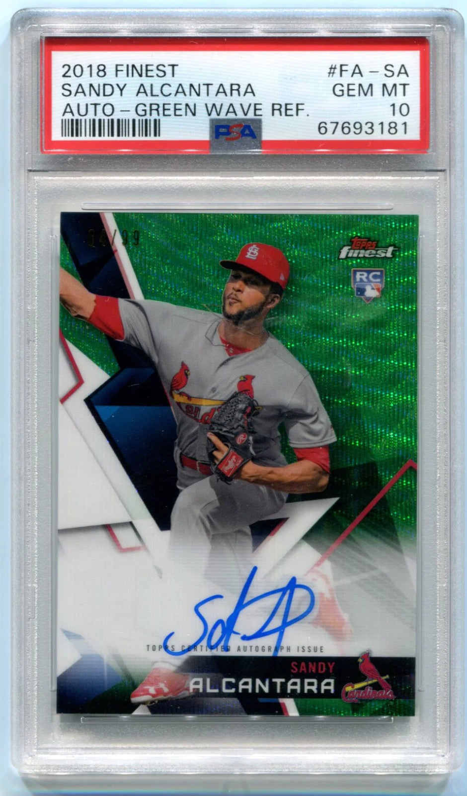 2018 Finest Sandy Alcantara Auto Green Wave Refractor 04/99 Psa 10