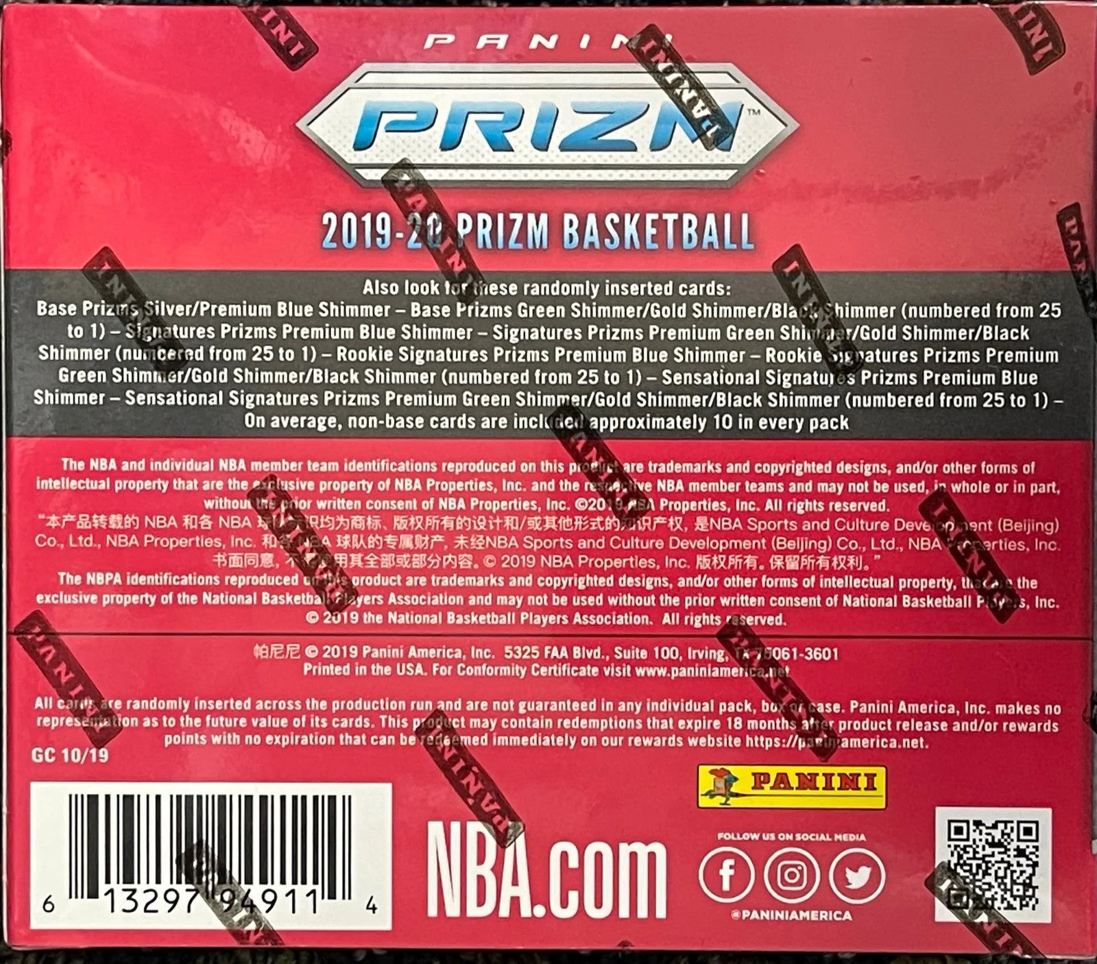 2019/20 Panini Prizm 1st Off The Line FOTL Basketball Hobby Box1 Pack Per Box, 10 Cards Per PackEach Prizm FOTL Box contains:- 3 Shimmer Autographs- 4 Silver Prizms- 3 Shimmer PrizmsLook for Zion Williamson Rookie Cards!Featuring Zion Williamson, R.J