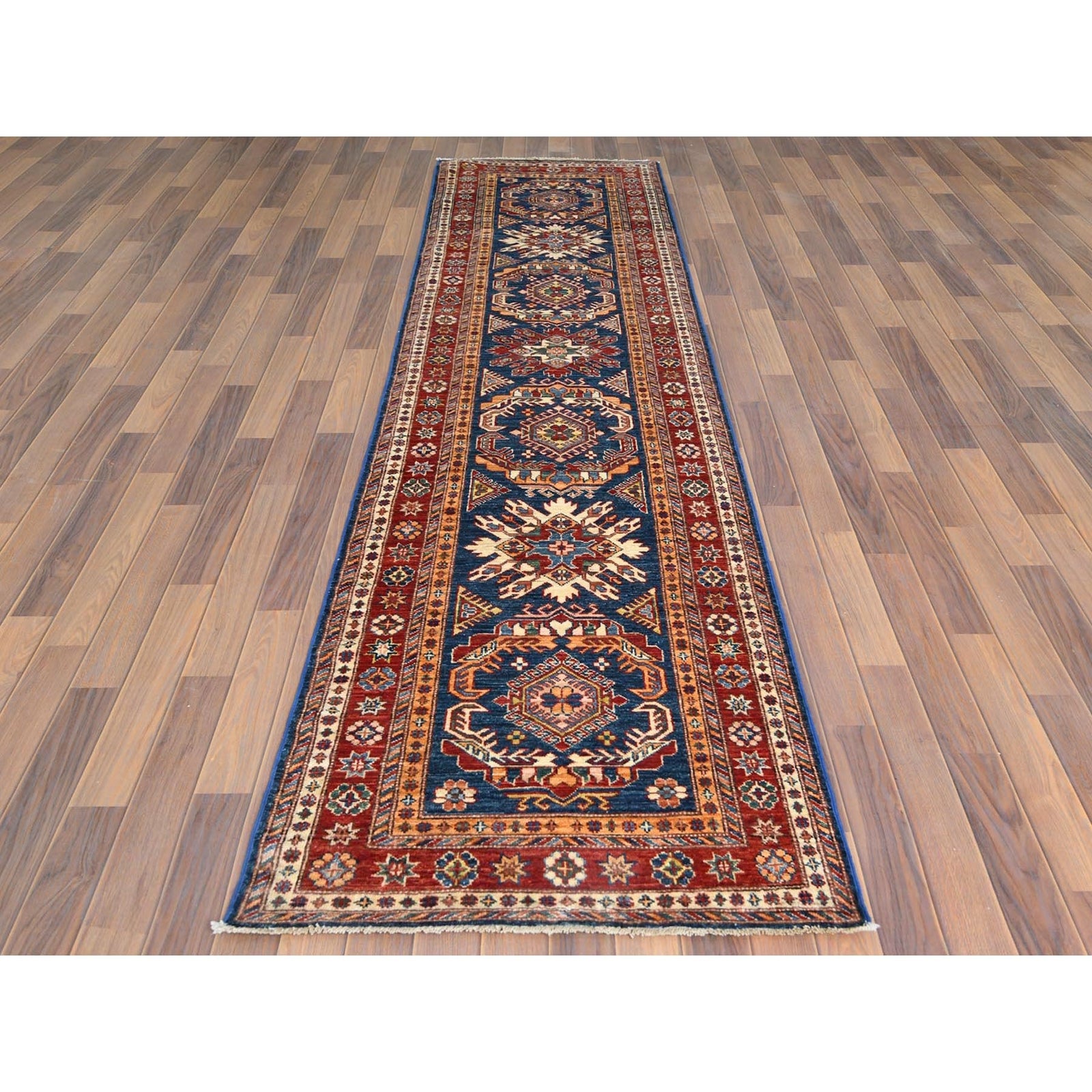 2'10"X11' Shiny Wool Hand Knotted Navy Blue Afghan Super Kazak Runner Rug