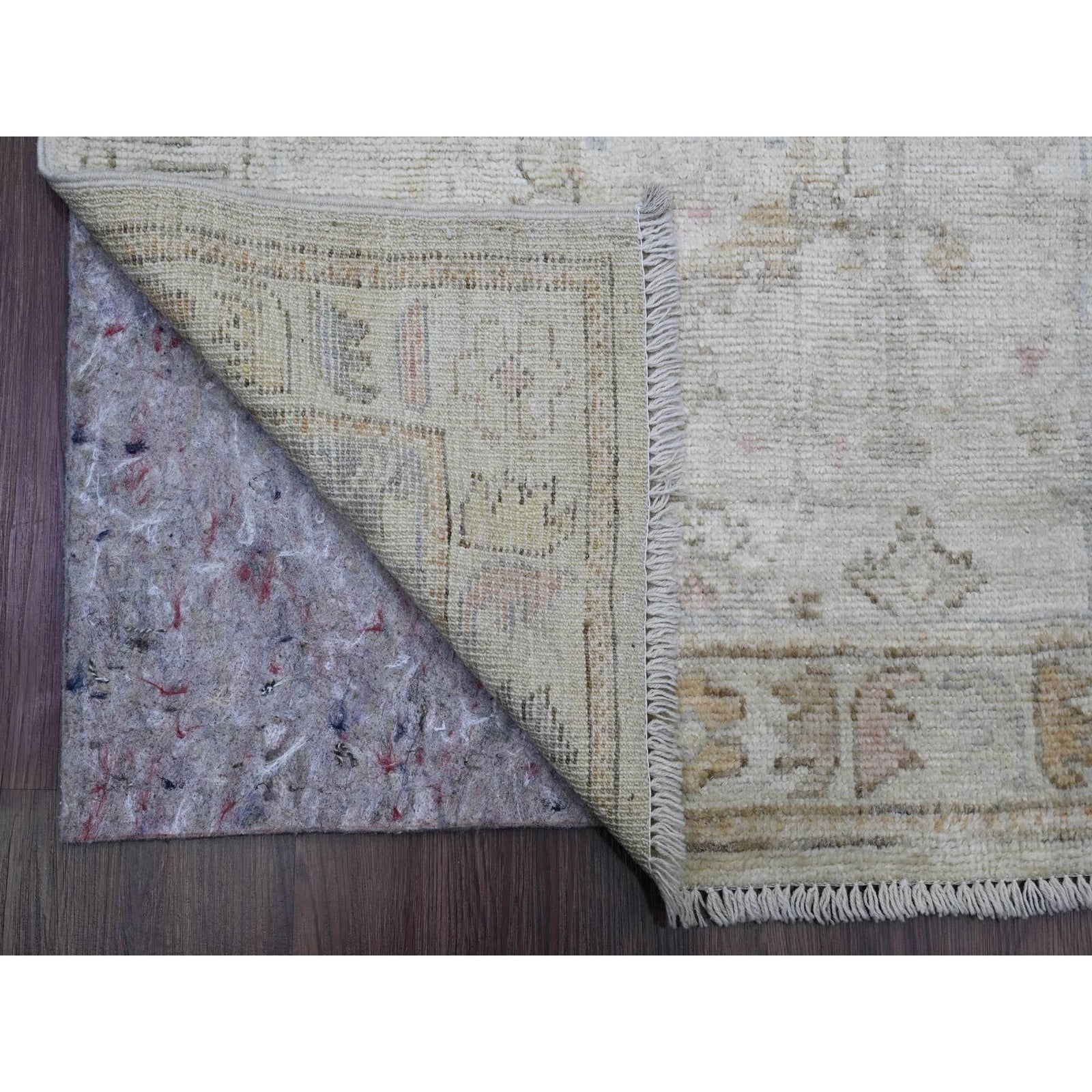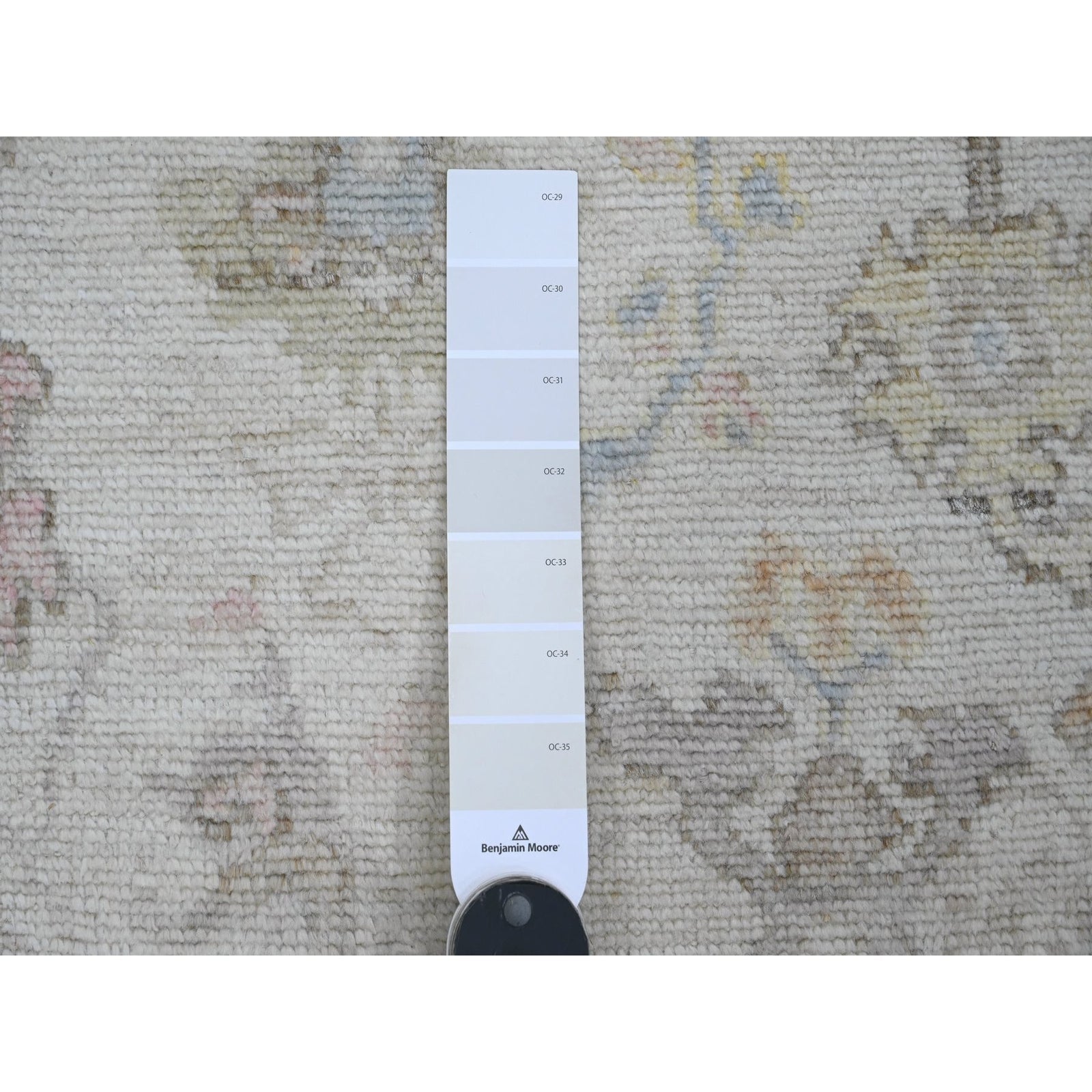 2'10"X12'7" White Angora Oushak Leaf Motifs Hand Knotted Wool Runner Rug