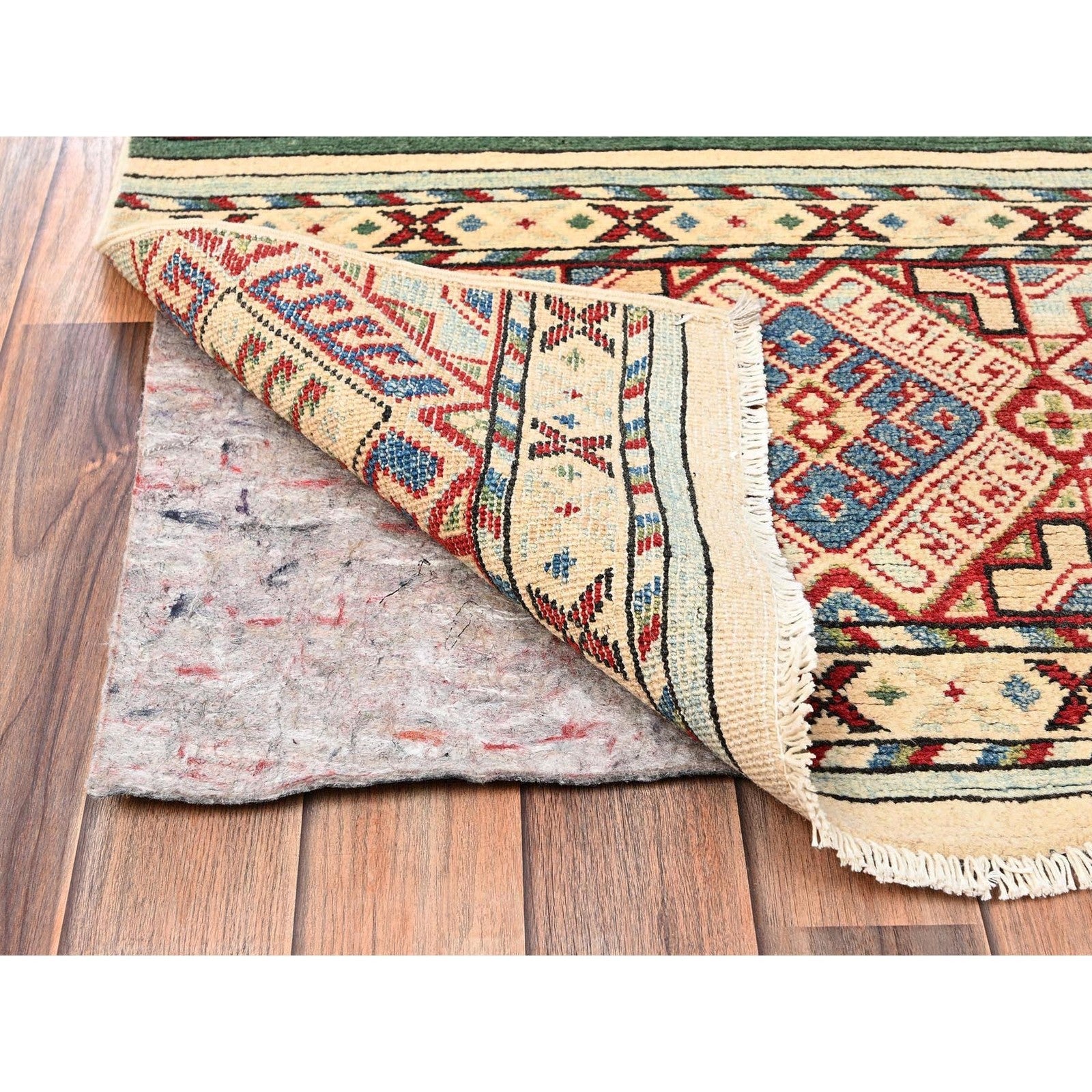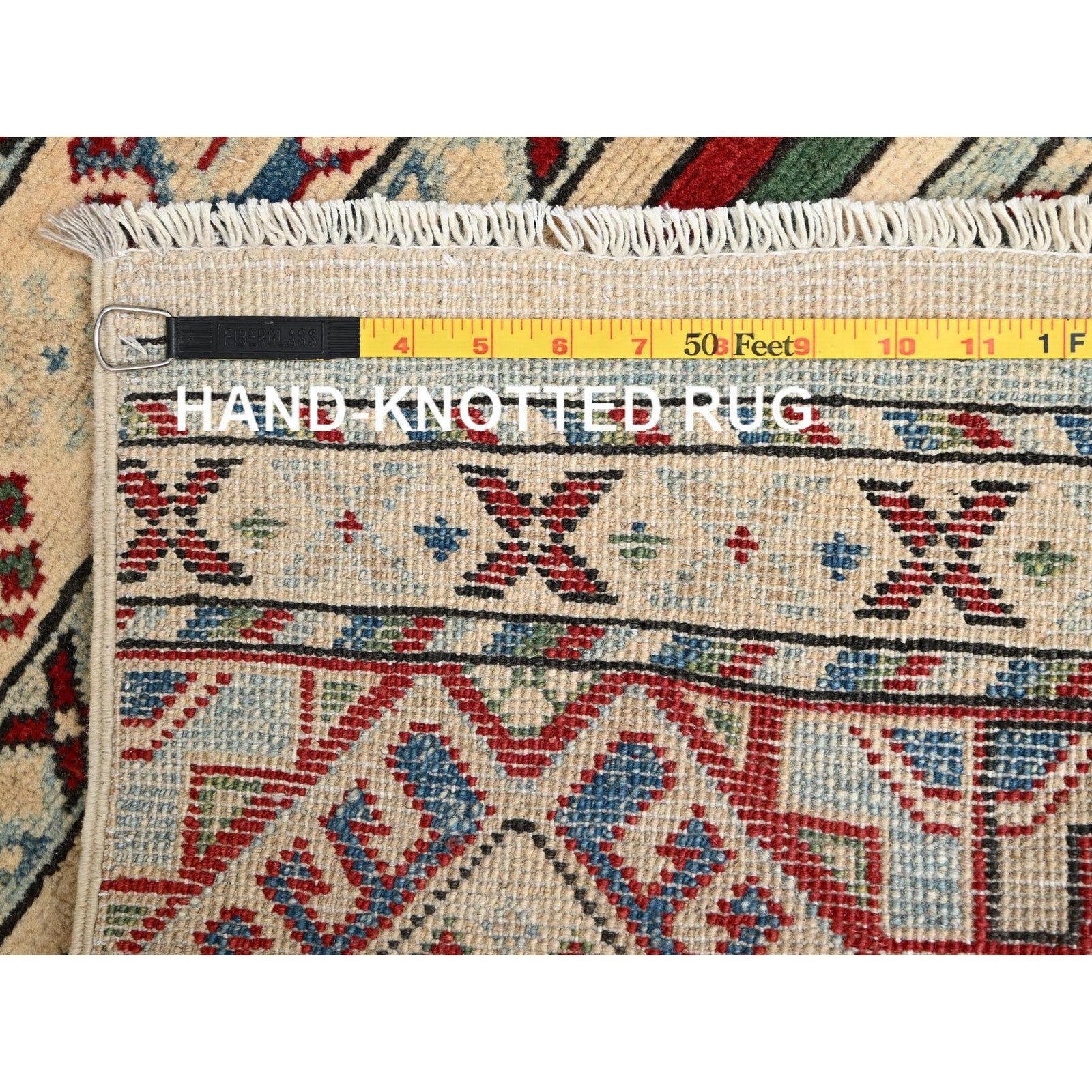 2'10"X13' Ivory Kazak With Geometric Pattern Hand Knotted Wool Runner Rug