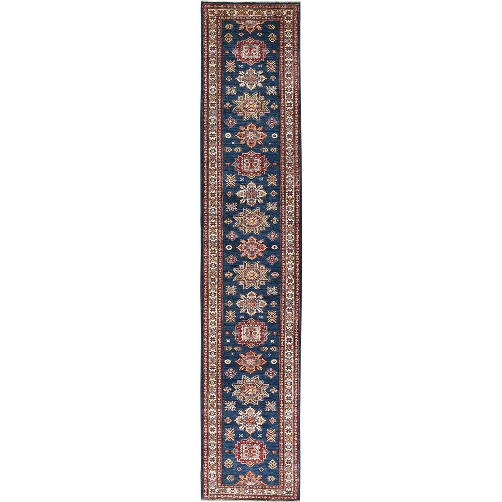 2'10"X13'8" Blue Afghan Super Kazak Wool Hand Knotted Runner Rug