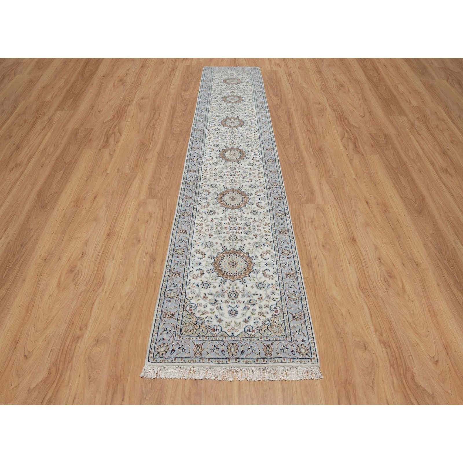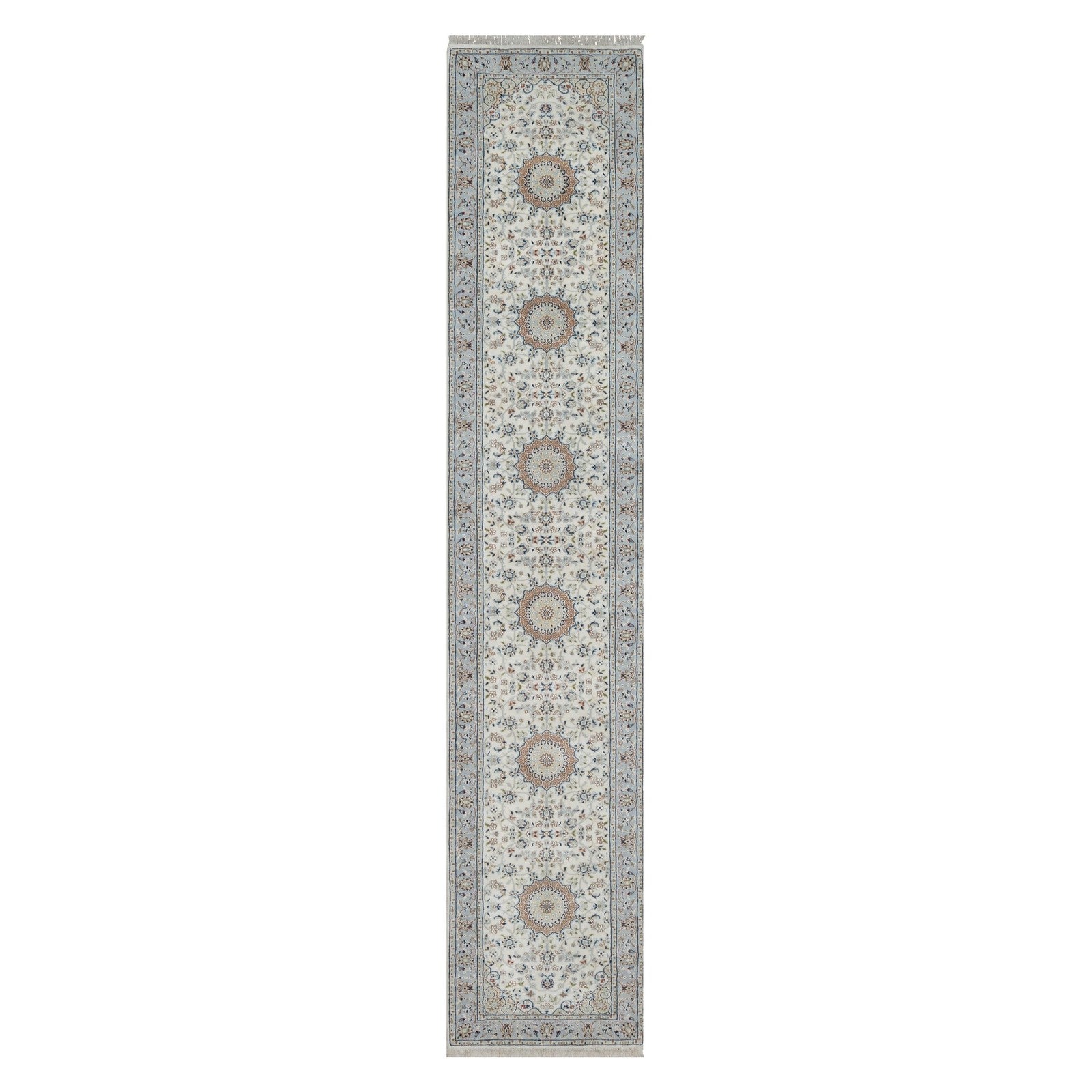 2'10"X14'6" Ivory Nain Flower Design Wool & Silk Hand Knotted Runner Rug