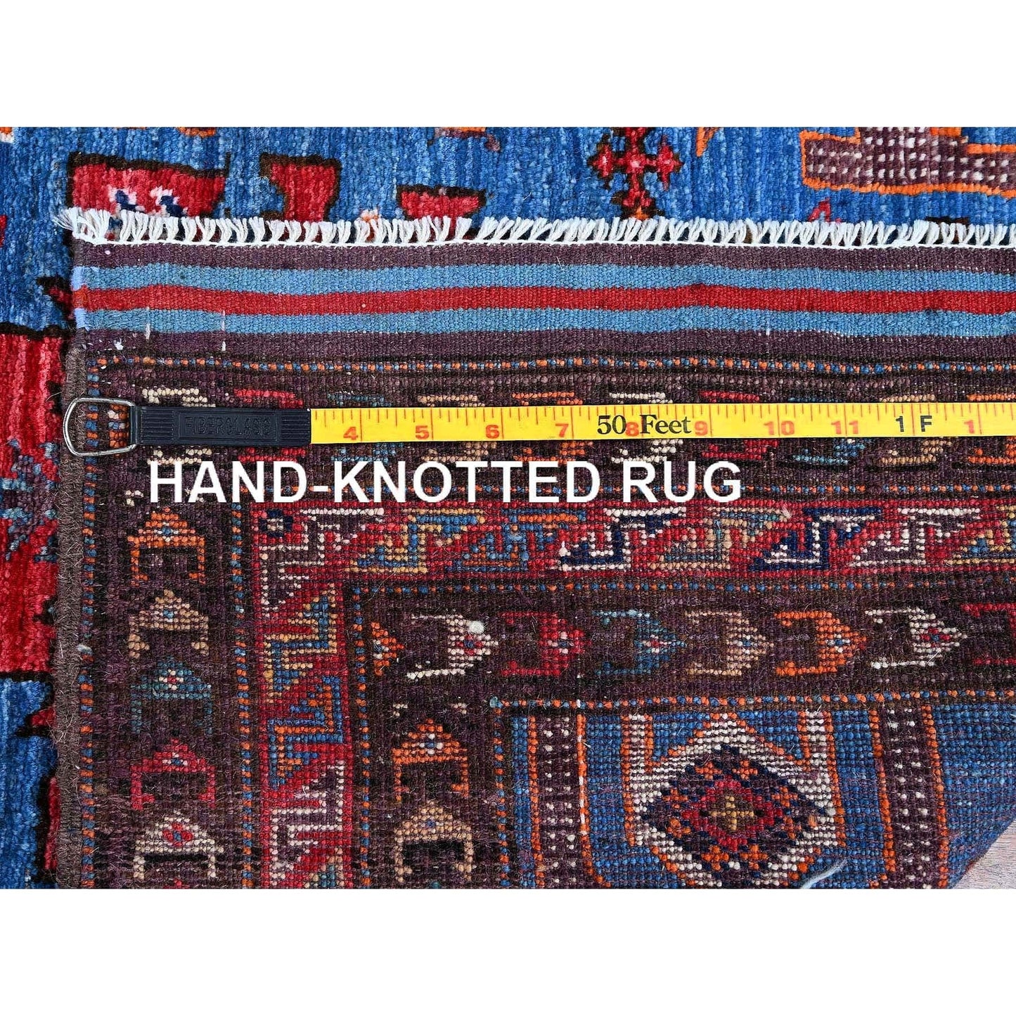 2'10"X4'9" Blue Afghan Caucasian Design Revival Hand Knotted Soft Wool Rug