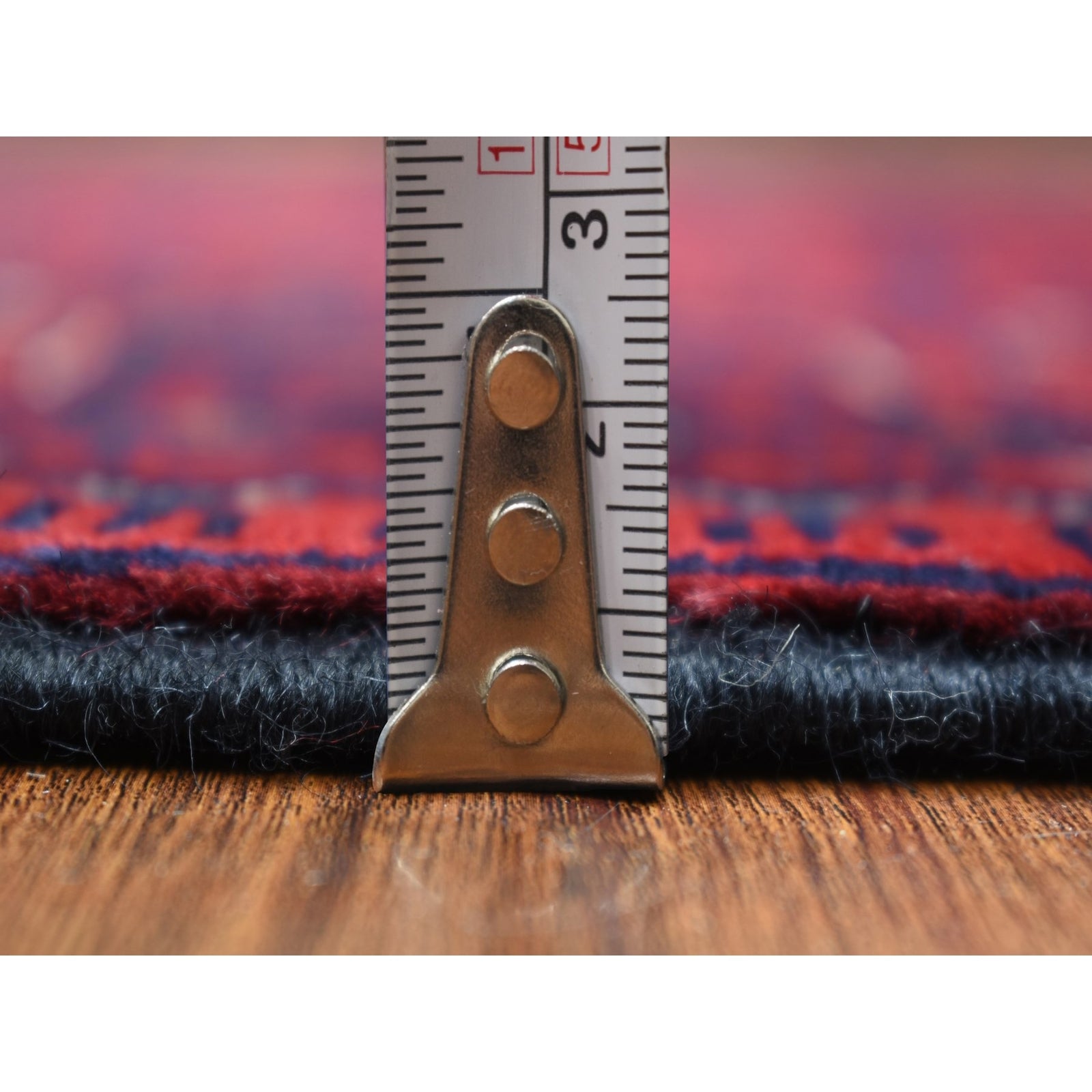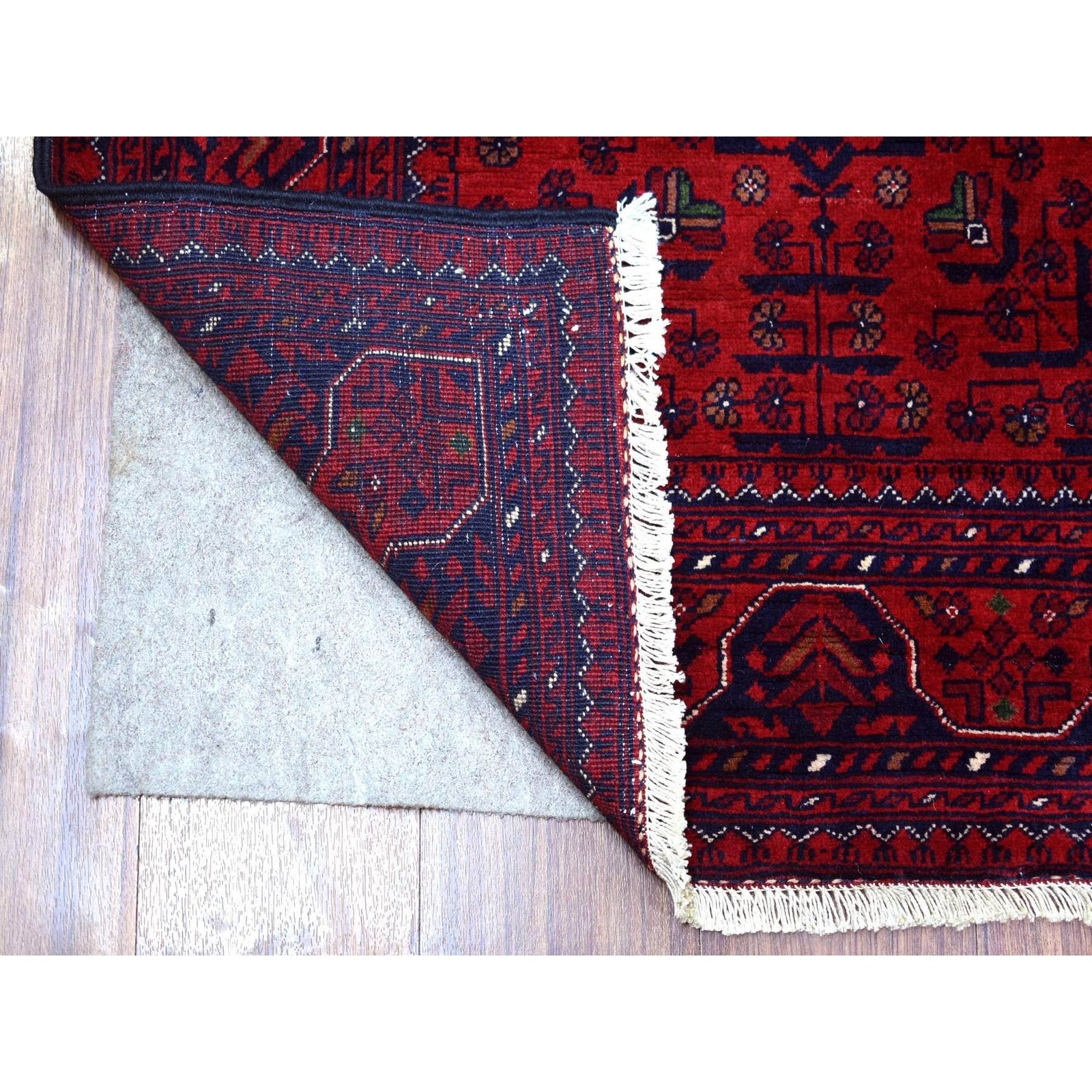 2'10"X9'9" Deep Red Hand Knotted Afghan Khamyab Velvety Wool Runner Rug