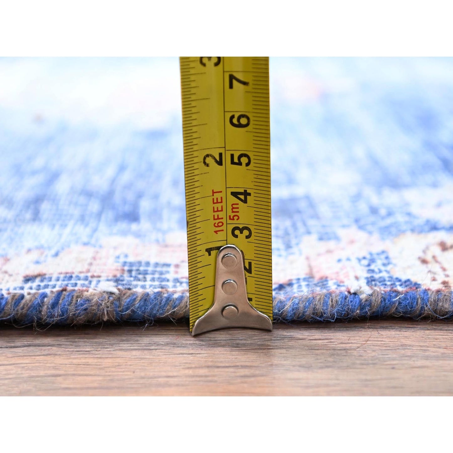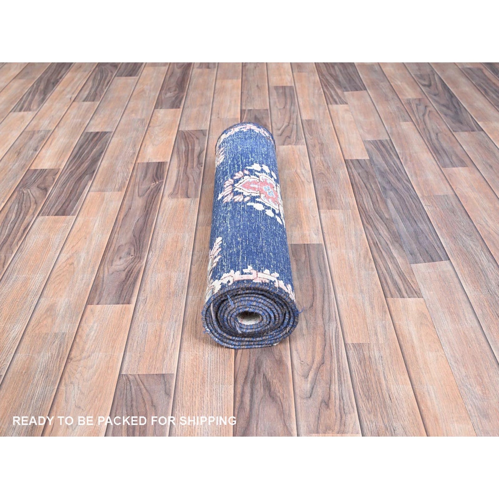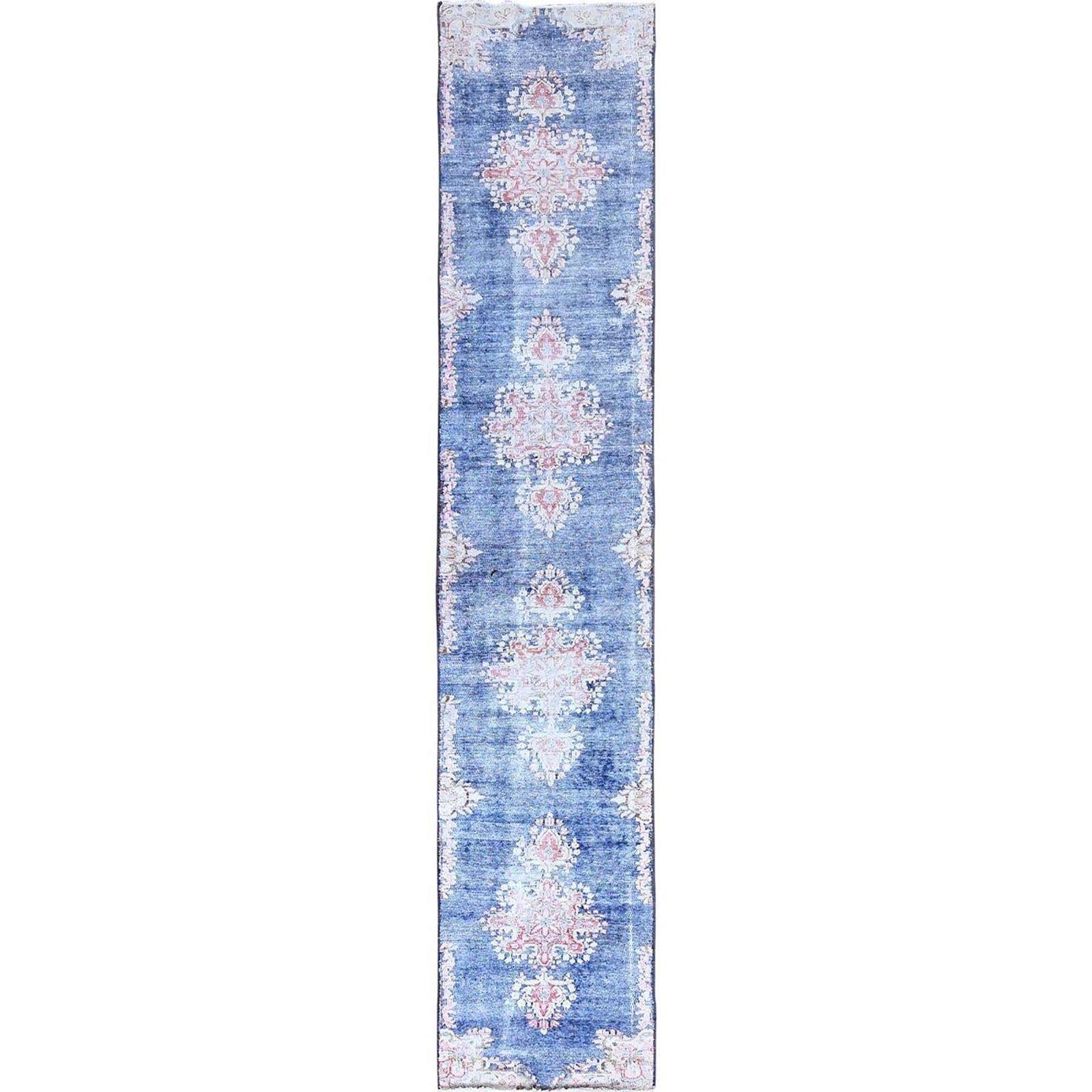2'1"X12' Blue Hand Knotted Vintage Zoroastrian Karman Wool Runner Rug