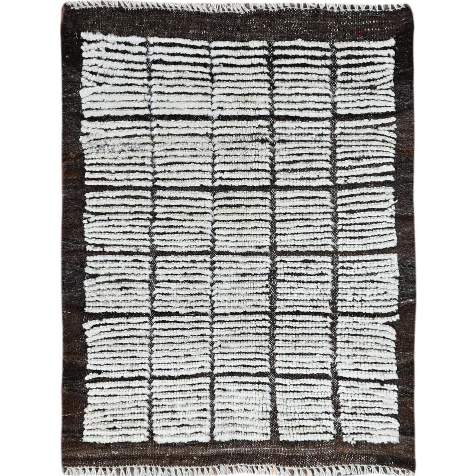 2'1"X2'8" White Moroccan Weave With Box Design Wool Hand Knotted Mat Rug