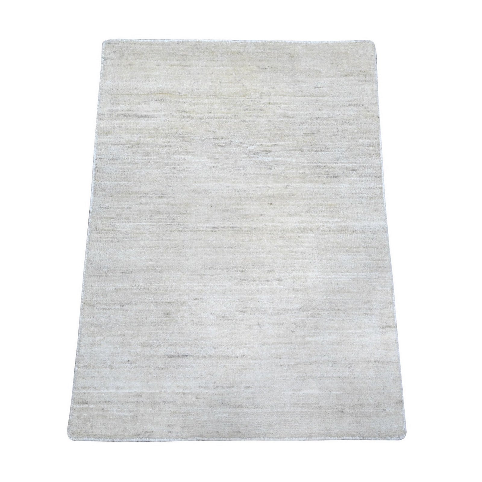 2'1"X3' Bone White Single Color Modern Peshawar Hand Knotted Wool Mat Rug