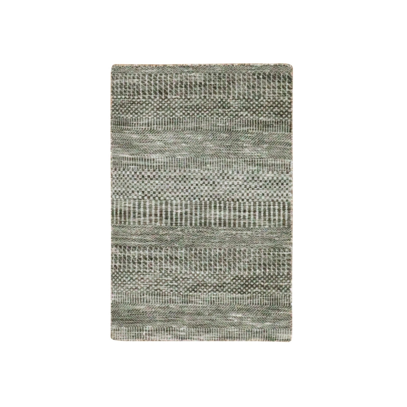 2'1"X3'1" Echo Gray Hand Knotted Dyed Wool Grass Design Mat Rug