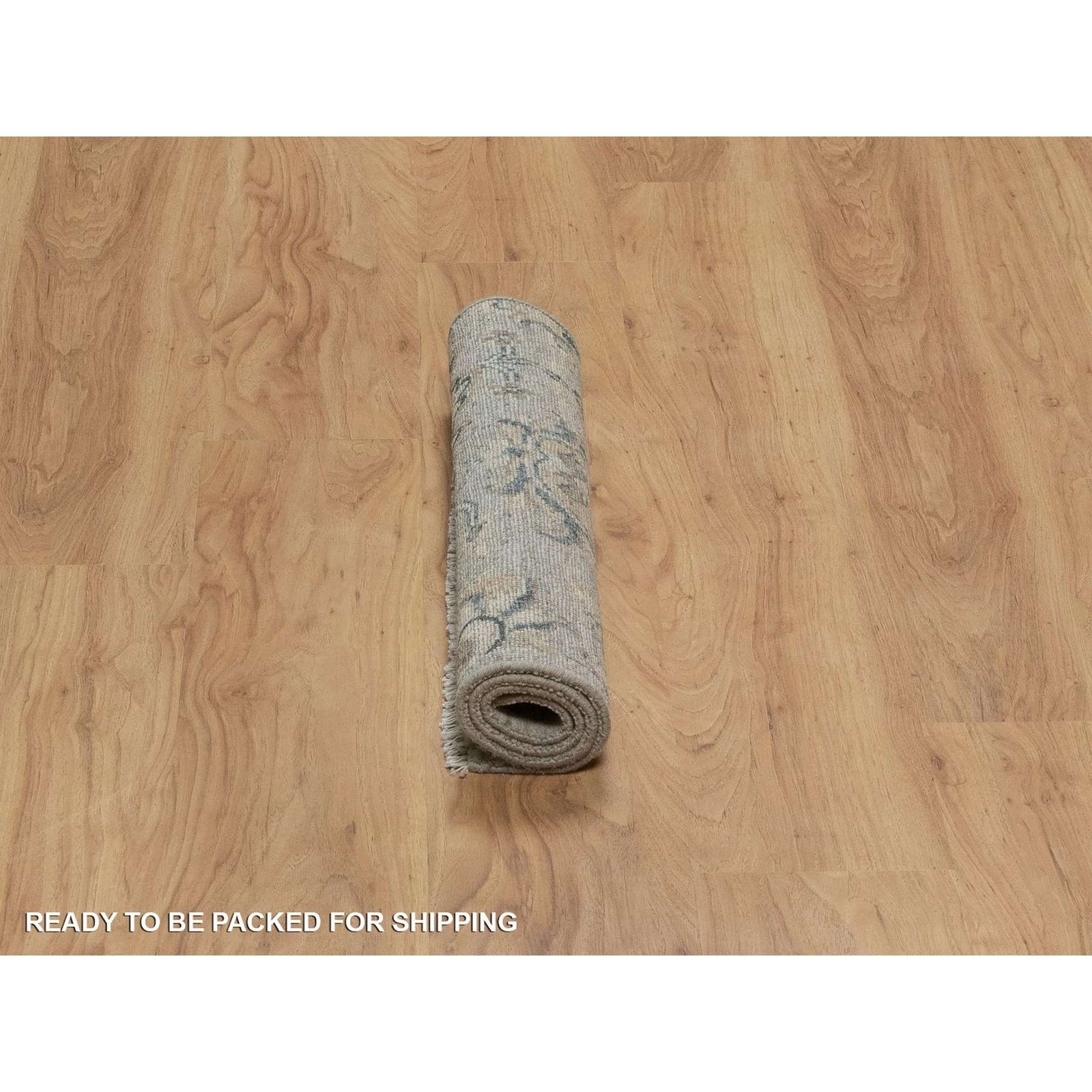2'1"X3'1" Gray Broken Pattern Oushak Design All Wool Hand Knotted Mat Rug