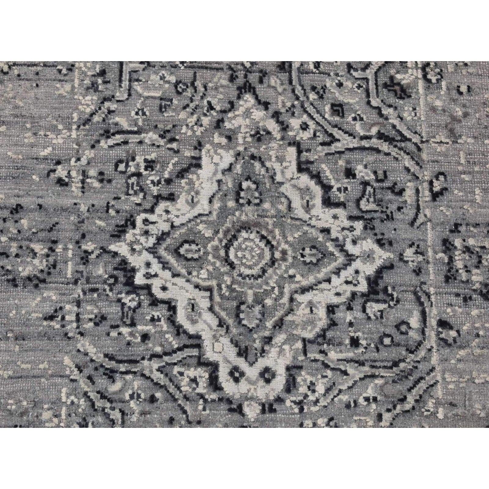2'1"X3'1" Gray Zoroastrian Design Silk With Wool Hand Knotted Mat Rug