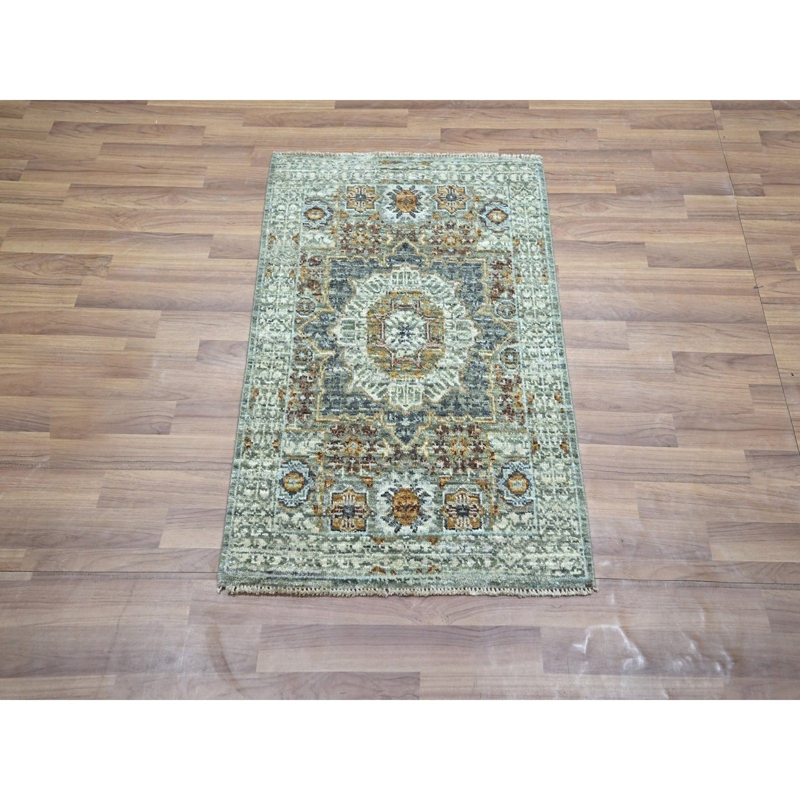 2'1"X3'1" Green Hand Knotted Rug Wool Pre Historic Mamluk Design Mat Small