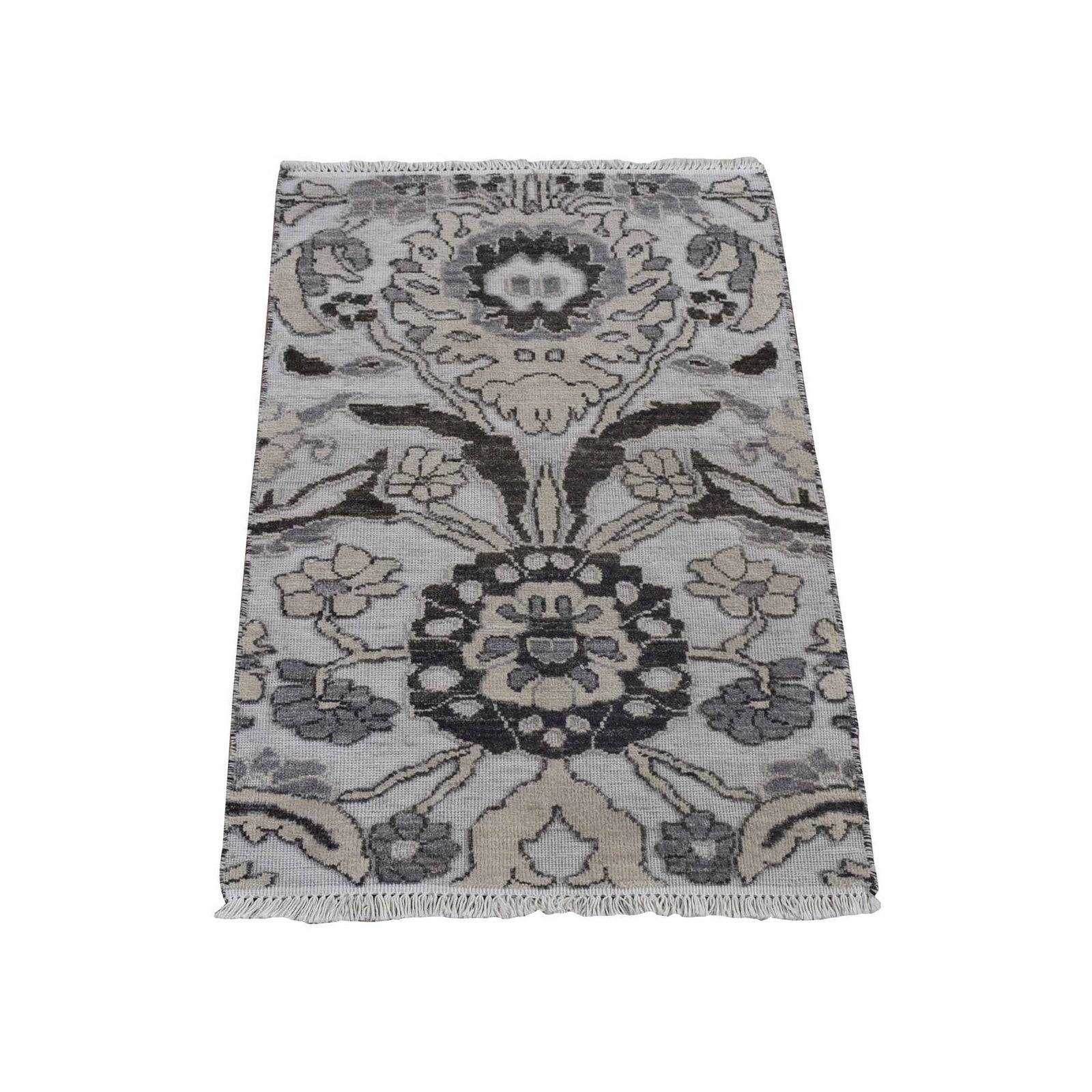 2'1"X3'1" Ivory Wool Oushak Design Hand Knotted Sample Fragment Mat Rug