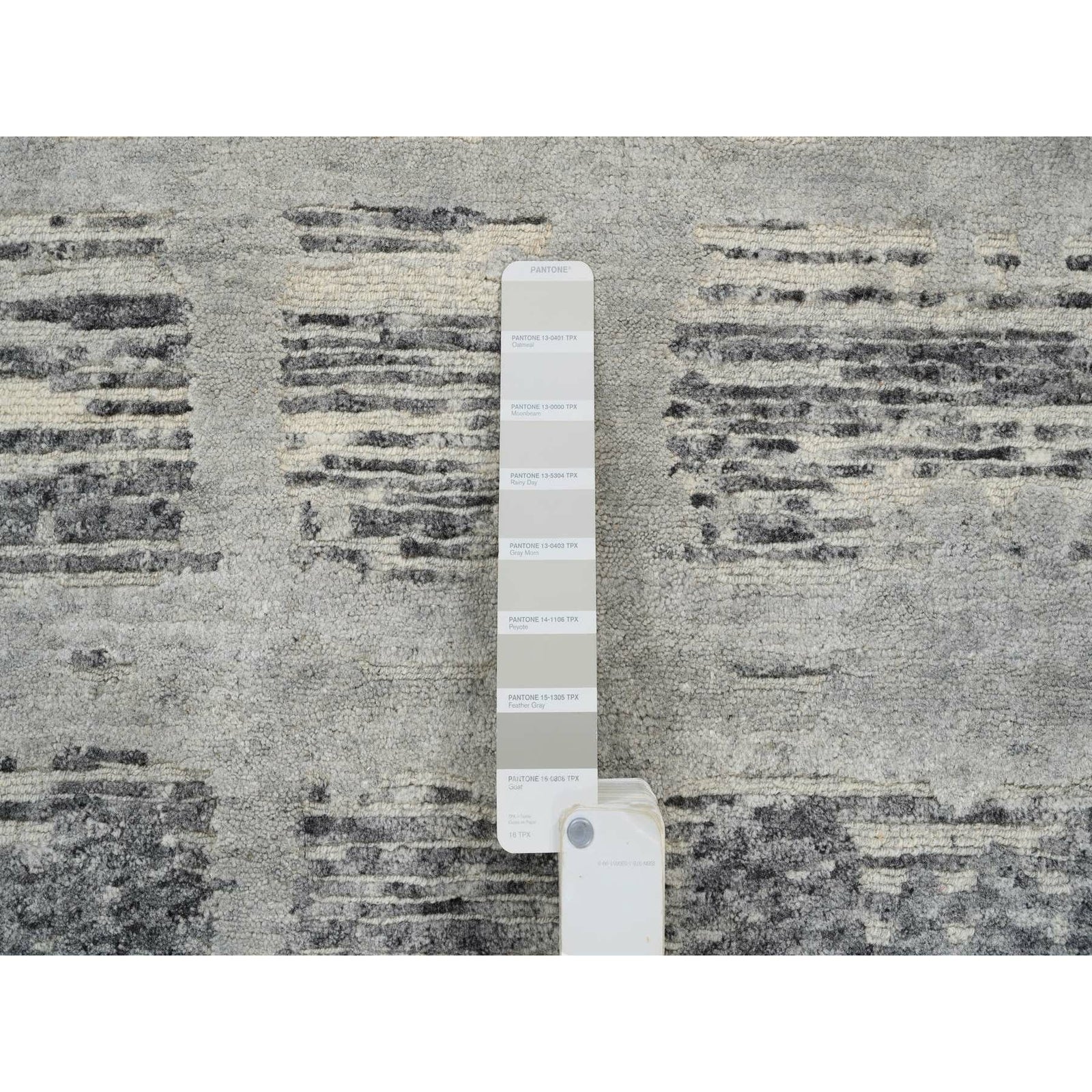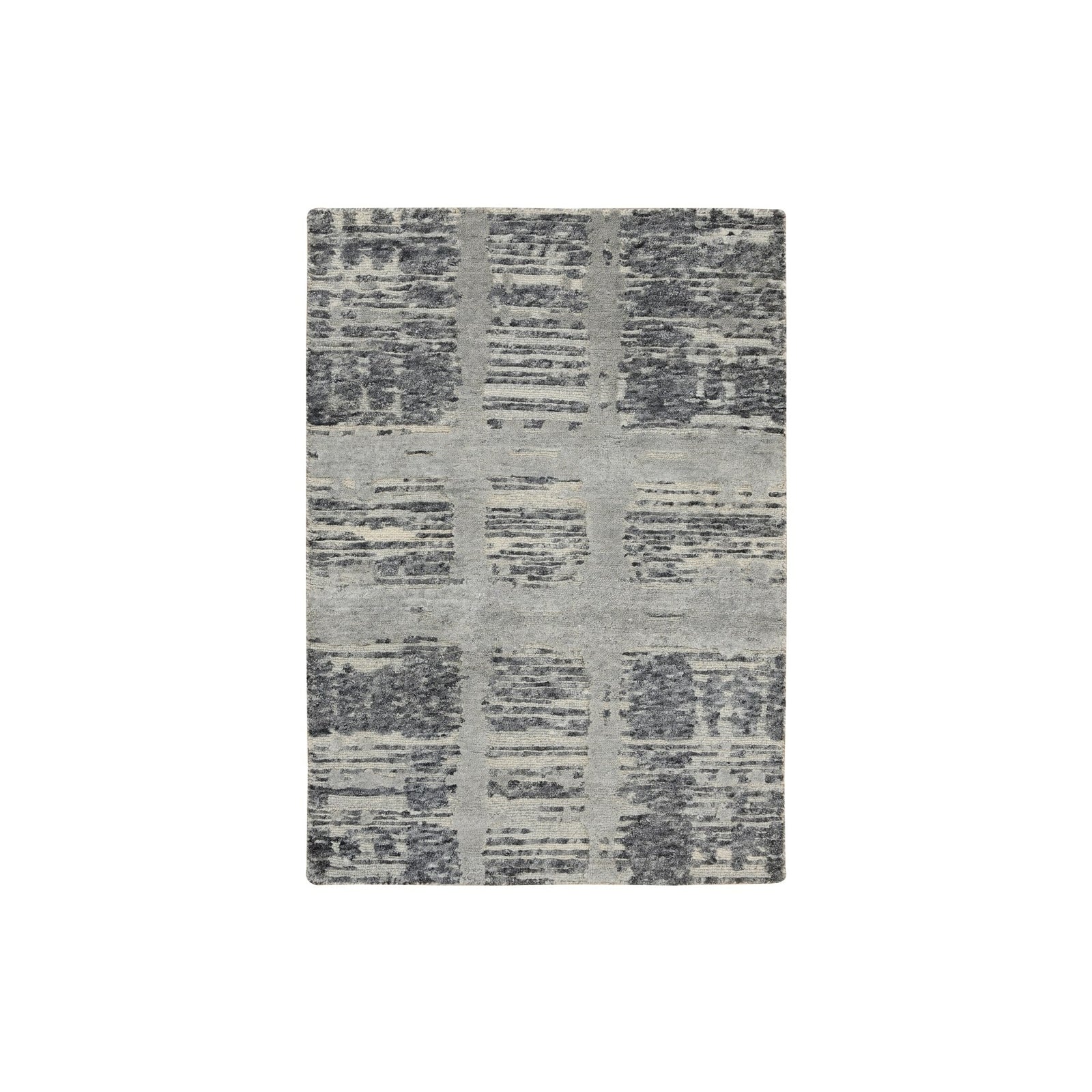 2'1"X3'1" Light Gray Hand Knotted Modern Hand Spun Wool Mat Oriental Rug