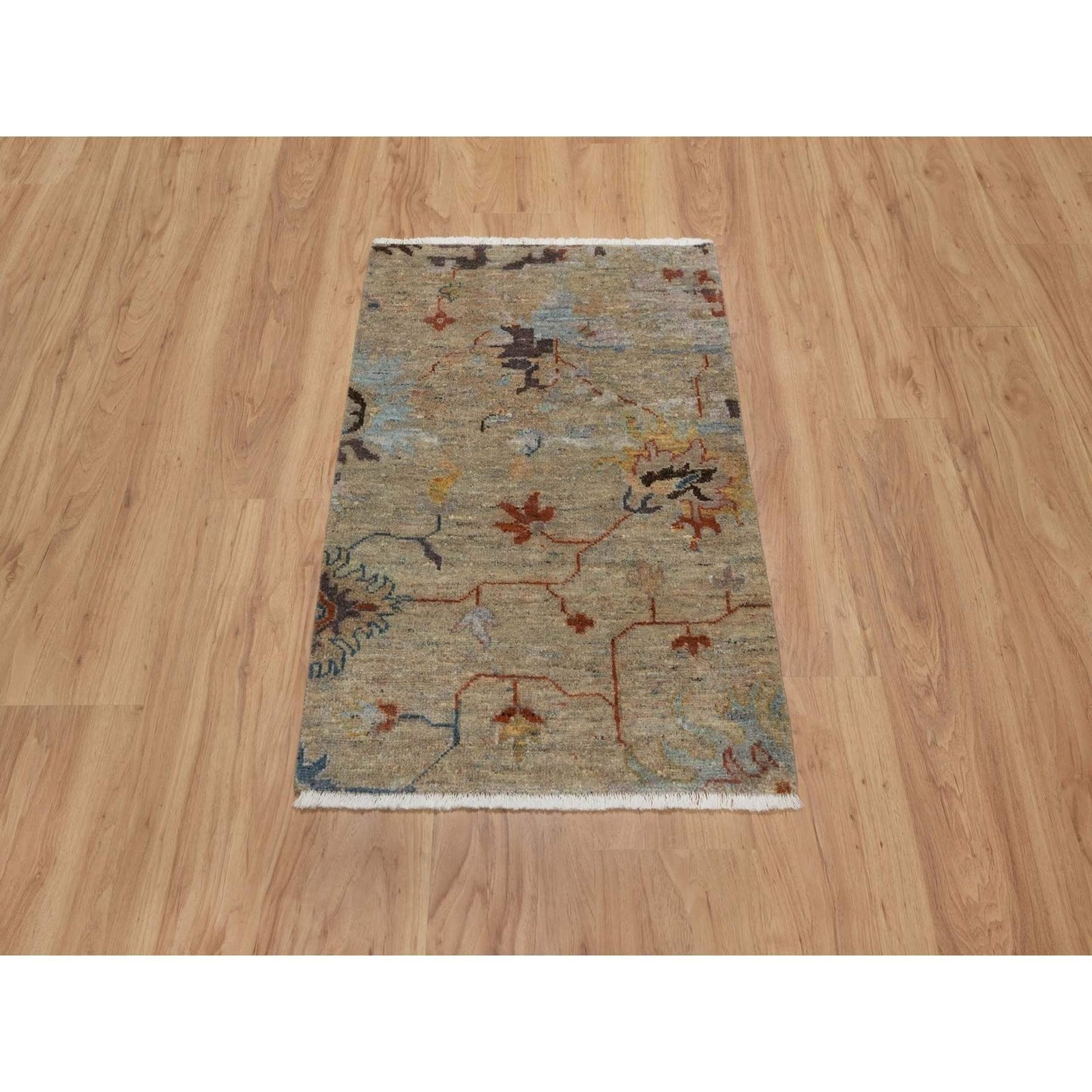 2'1"X3'1" Oak Brown Broken Pattern Oushak Design Wool Hand Knotted Rug
