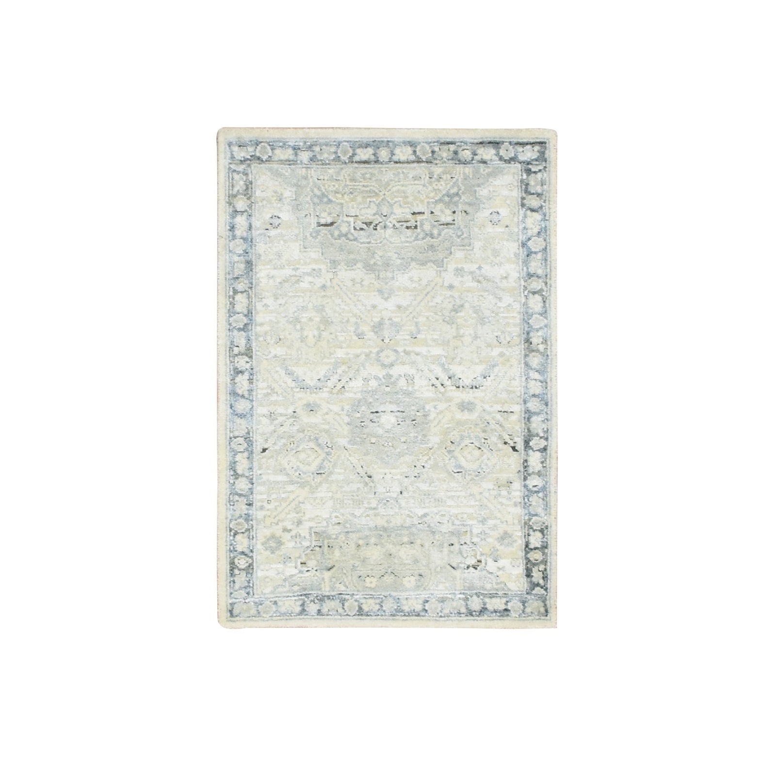 2'1"X3'2" Gray Silk And Oxidized Wool Oushak Design Hand Knotted Mat Rug