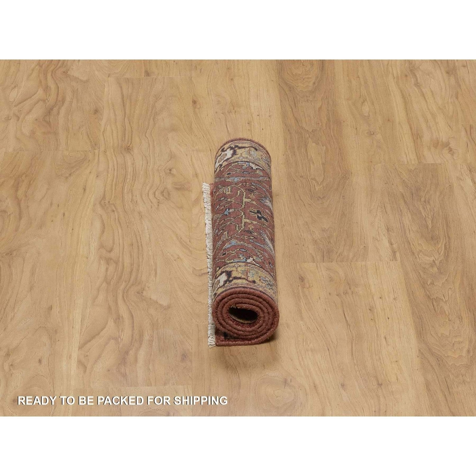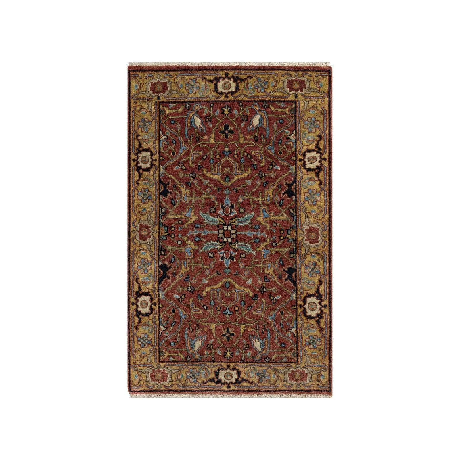 2'1"X3'3" Red Hand Knotted Antiqued Fine Heris Re-Creation Wool Mat Rug
