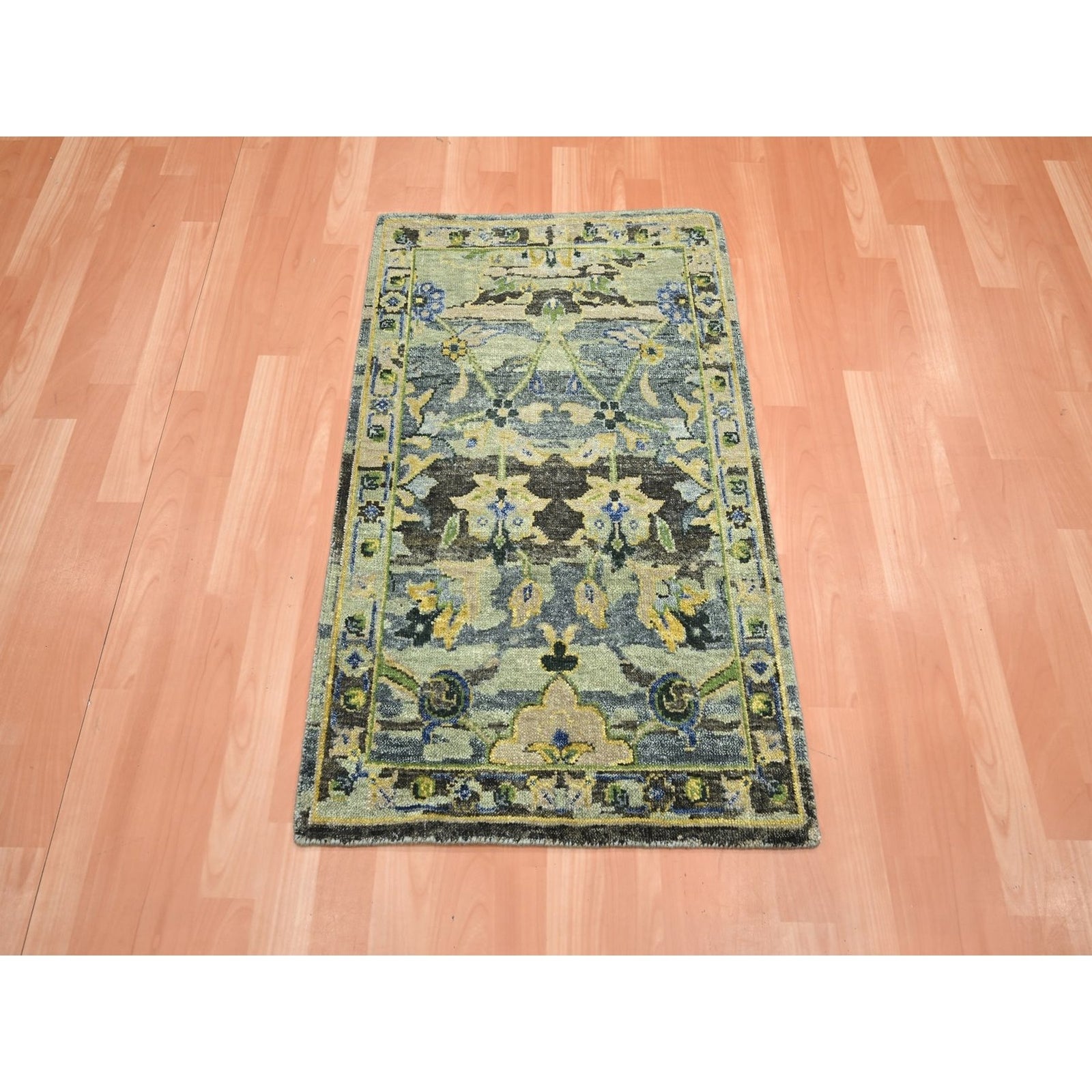 2'1"X3'6" Green Erased Zoroastrian Design Hand Knotted Pure Wool Mat Rug